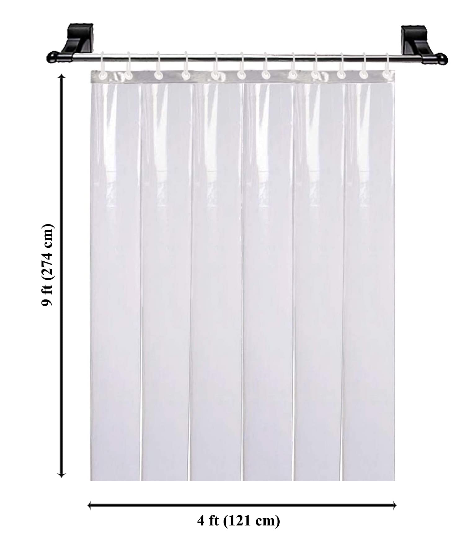 Kuber Industries PVC 9 Feet Shower Curtain, AC curtain is made from high quality PVC Material. This curtain has thickness and this curtain is pre-fitted holes so there is no need to worry about additional rings. This curtain protects your interior from unwanted insects, polluted air and dust. This is the perfect for covering the open entrance. It can be used as a screen to keep flies/insects out, and also preserve the cooling effect of shower. it will offer a transparent view from outside. You can use this curtain at your office, showroom, AC room and home.Detailed Specifications: