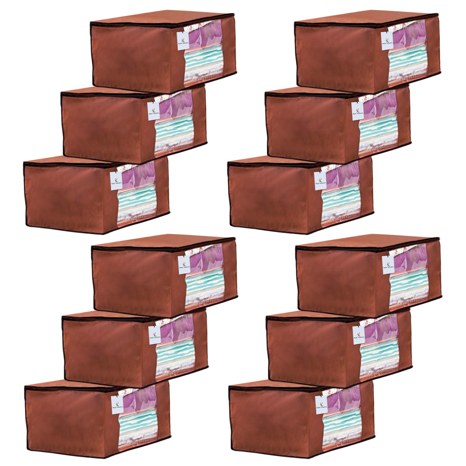 Made from durable, Wear and tear-resistant non-woven fabric.Lightweight and flexible saree Covers, carefully stitched to offer additional strength, size of each bag: 43 cm x 35 cm x 22 cm, transparent see-through window for easy identification of contents.Durable zipper for easy opening and closing, ideal for storing sarees and protecting them from dust and insects, package Contents: 12 piece saree cover (color: Dark Brown).
