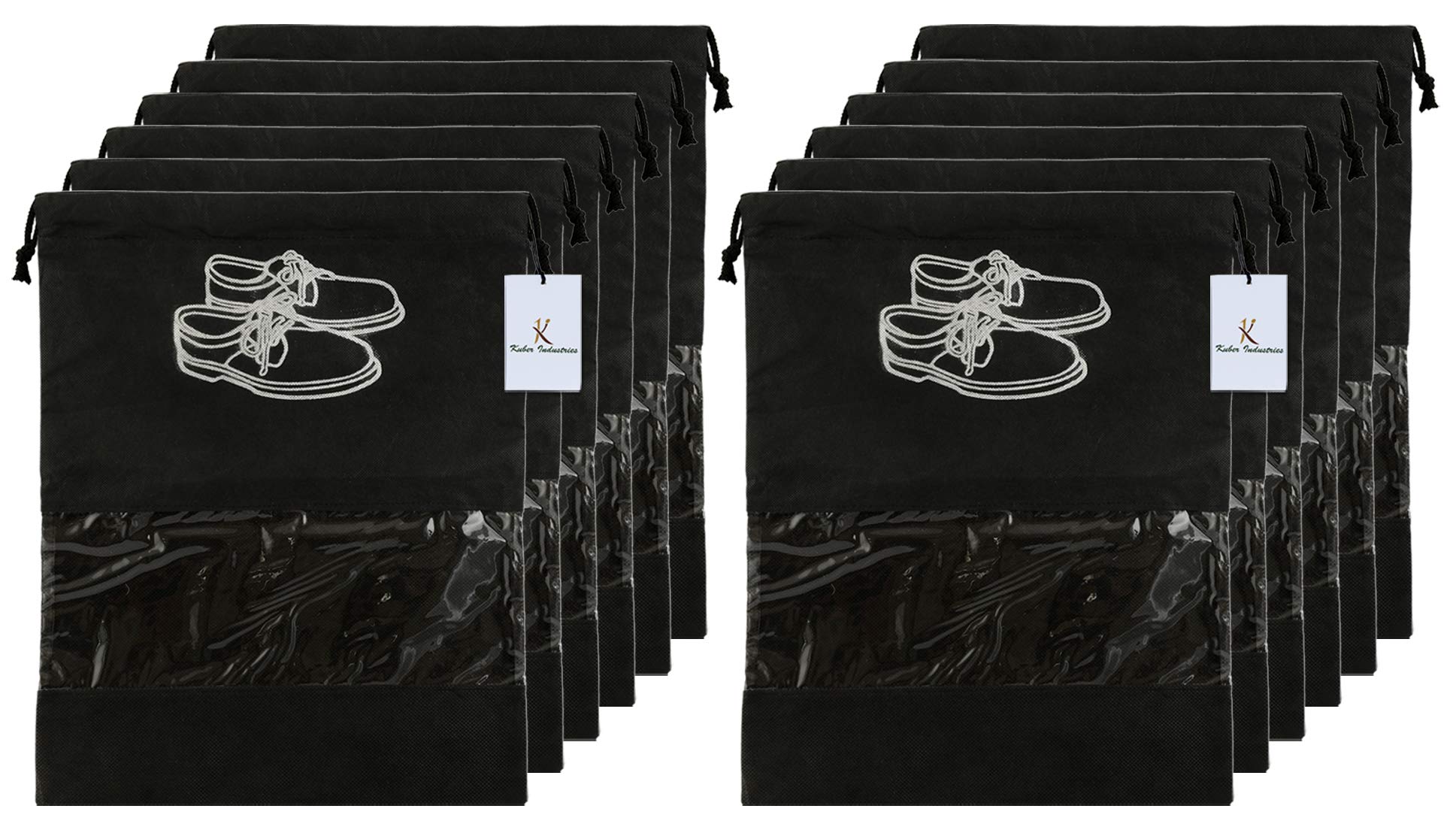 Kuber Industries 12 Piece Non Woven Travel Shoe Cover, String Bag Organizer, Black -CTMTC039487