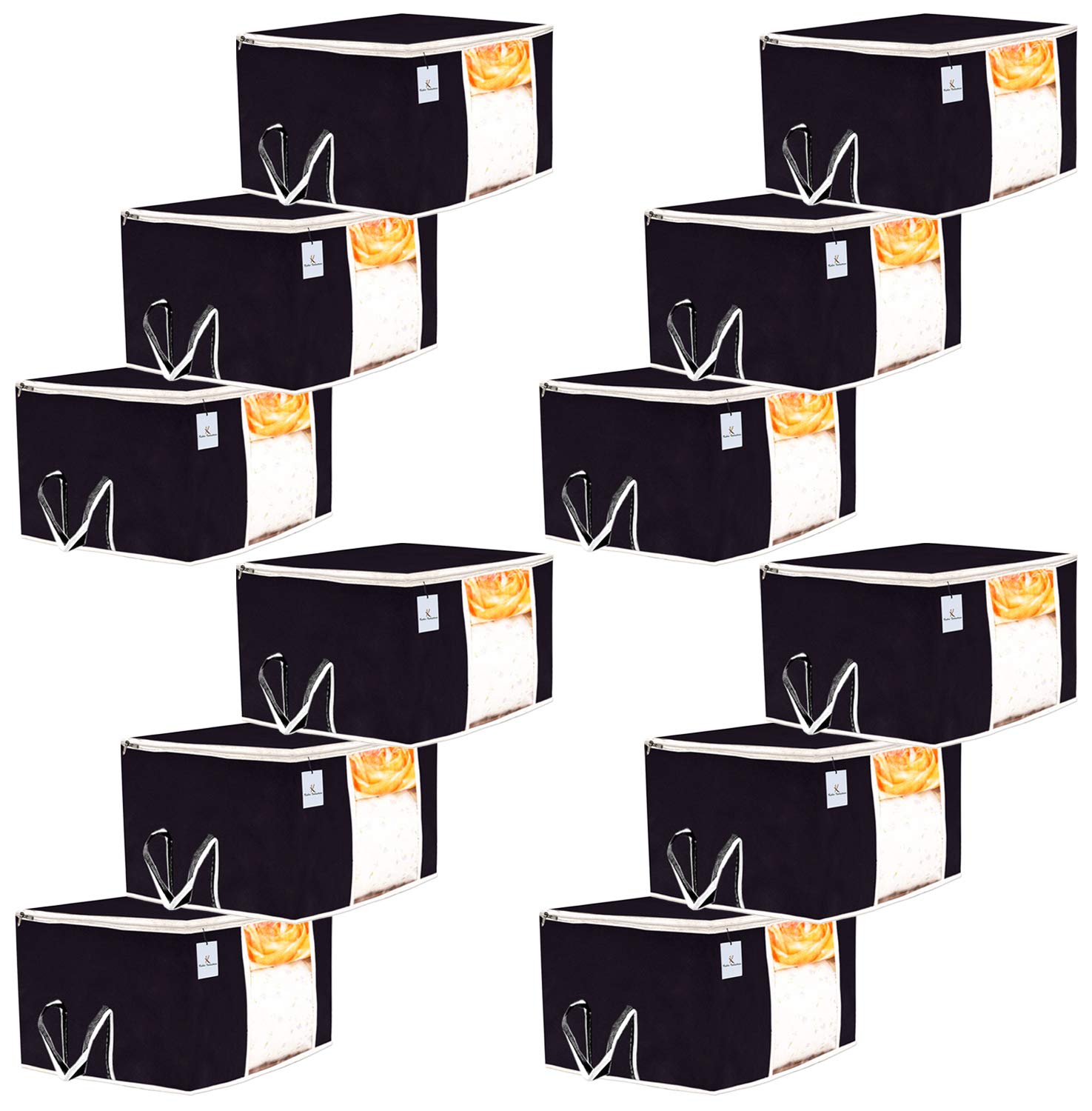 Package Contents: 12 Piece Underbed Storage Bag, Material: Non Woven, Color: Black, Size: 65 cm x 47 cm x 34 cm, Made from durable, wear and tear-resistant non-woven fabric. Lightweight and flexible organiser fits under multiple beds, Carefully stitched to offer additional strength. Size of each bag: 65 cm x 47 cm x 34 cm,Transparent see-through window for easy identification of contents. Durable zipper for easy opening and closing, Under bed storage bags for dust, dirt and pest-free storage. Attached handles for convenient pulling and lifting.Kuber Industries's Underbed Bag keeps your quilts, blankets, pillows, bedsheets, towels, summer and winter clothing organized. It is perfect for storing those off-season things not needed. It easily goes inside wardrobe, in the bed storage section, shelves, and reduces clutter in wardrobes and closets.The bag can be folded back when not in use. It collapses flat for saving precious storage space.The Storage bag can be kept in your storage beds, closets, wardrobes, storage cabinets. It maximizes your storage space and is perfect for those not-so-frequently used items in your Households.