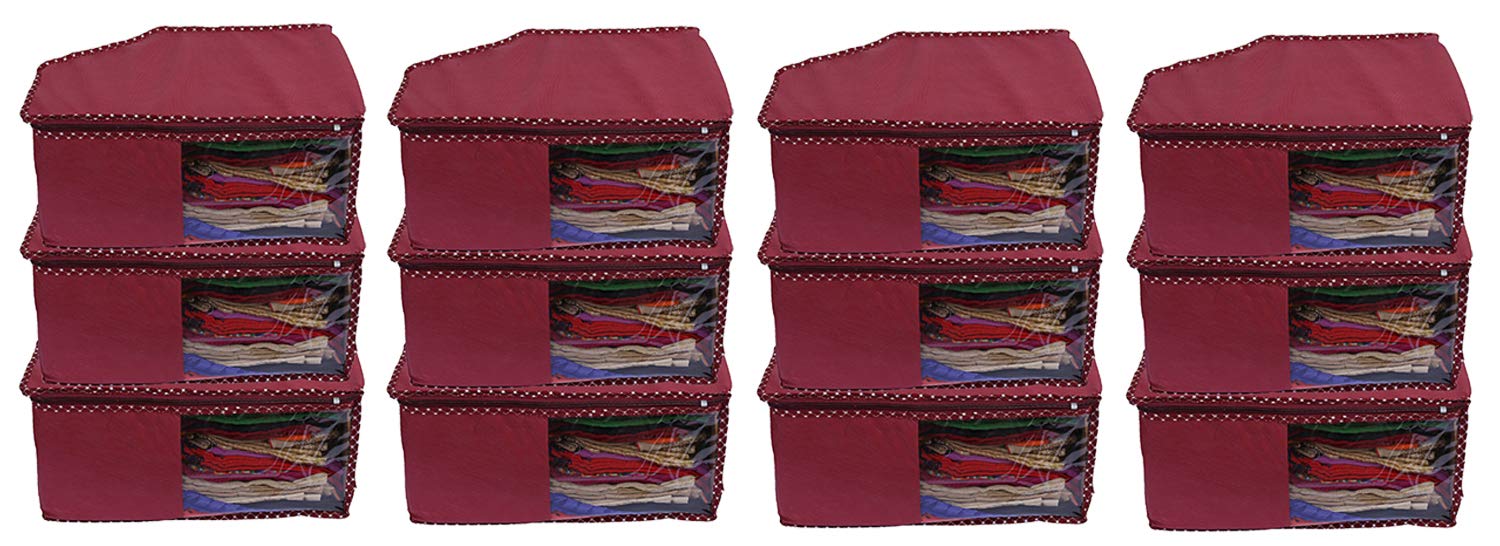 Kuber Industries 12 Pieces Non Woven Blouse Cover Set, Maroon