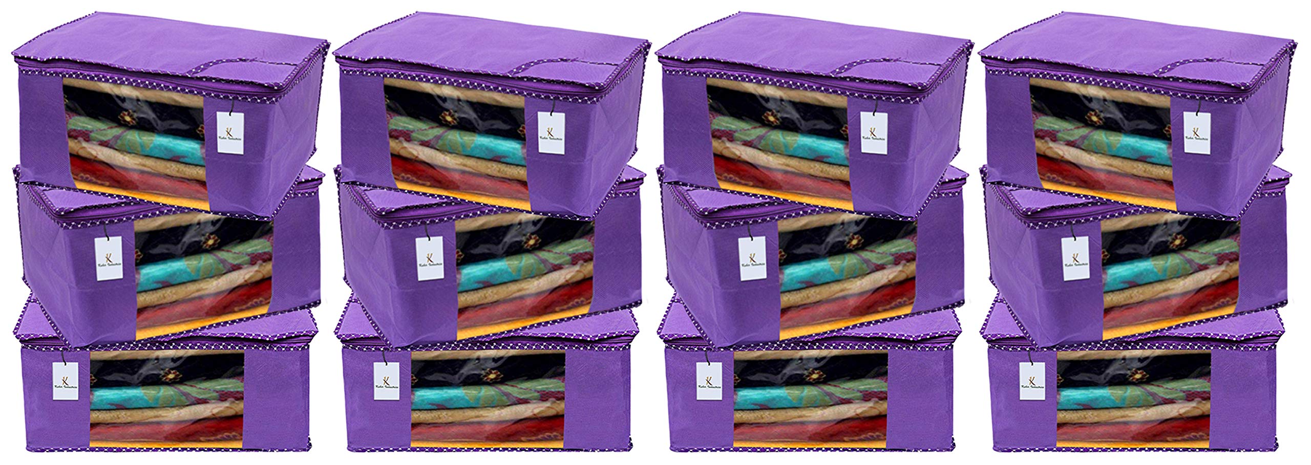Material: Non Woven, Color: Purple. .Package Contents: 12 Pieces Saree Cover .Size: 43 cm x 35 cm x 22 cm .Made from durable, wear and tear-resistant non-woven fabric. Lightweight and flexible saree covers .Carefully stitched to offer additional strength. Ideal for storing sarees and protecting them from dust and insects .Transparent see-through window for easy identification of contents. Durable zipper for easy opening and closingDetailed Specifications: