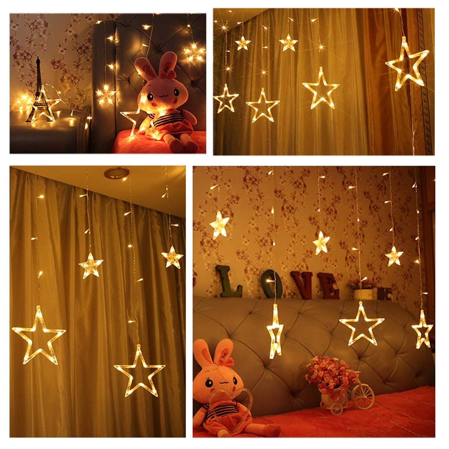 Twinkle twinkle little star - 12 stars (6 big stars 6 small stars) and 138 LED curtain string lights with the length of 2m or 6ft wire and 8 flashing modes allow you use curtain string lights anywhere you want. Safe and energy efficient LED - low power consumption and don't worry about safety when touching. Led cold light source can protect your eyes and keep this curtain string lights staying cool even after long usage. Wide application - quace 138 LED star lights is perfect for Diwali, Christmas, festivals, holiday, party, home, window, walls, doors, trees, eaves, balcony, yard, bedroom, patio and etc. Wherever you are, they can create different atmosphere and mood for you. Waterproof - with ip 44 waterproof level you can use led string curtain lights indoor and outdoor. (Note: the power and controller is non-waterproof, please protect them well when using outdoor).Detailed Specifications: