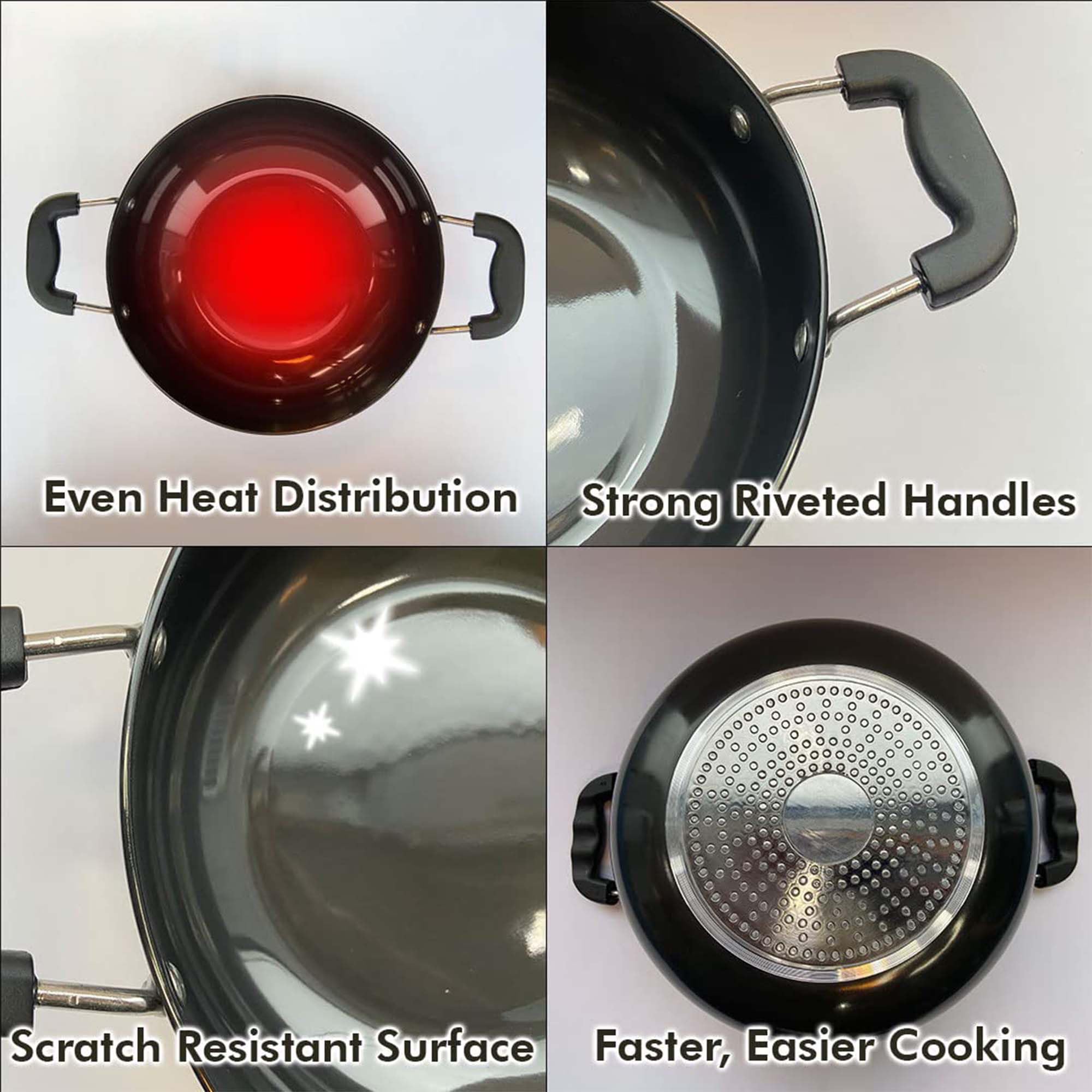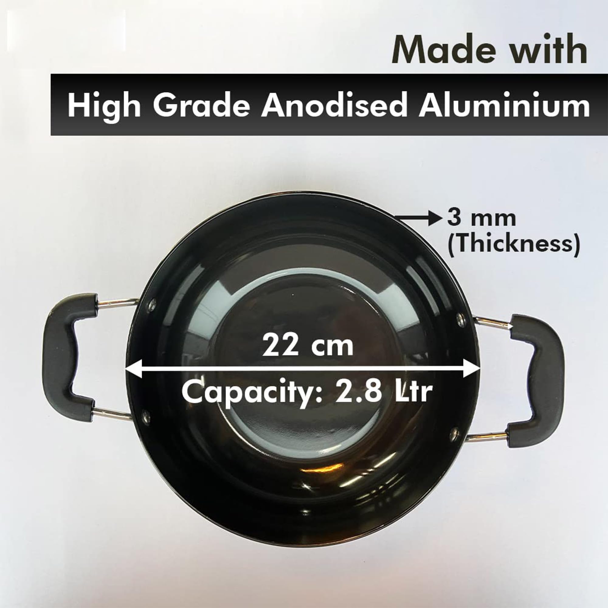 This kadai for deep frying is designed for those who need a reliable cookware piece in the kitchen. Made with aluminium, it is tough and effective, handling the high heat required for deep frying. Our deep fry kadai is compatible with induction stoves, making it a multipurpose tool for various cooking styles, whether you are frying, sautéing, or simmering. This wok provides strong heat distribution because of its base, allowing even cooking every time. The handle offers a firm grip that reduces the risk of spills, while its deep design accommodates large portions for family meals.Detailed Specifications: