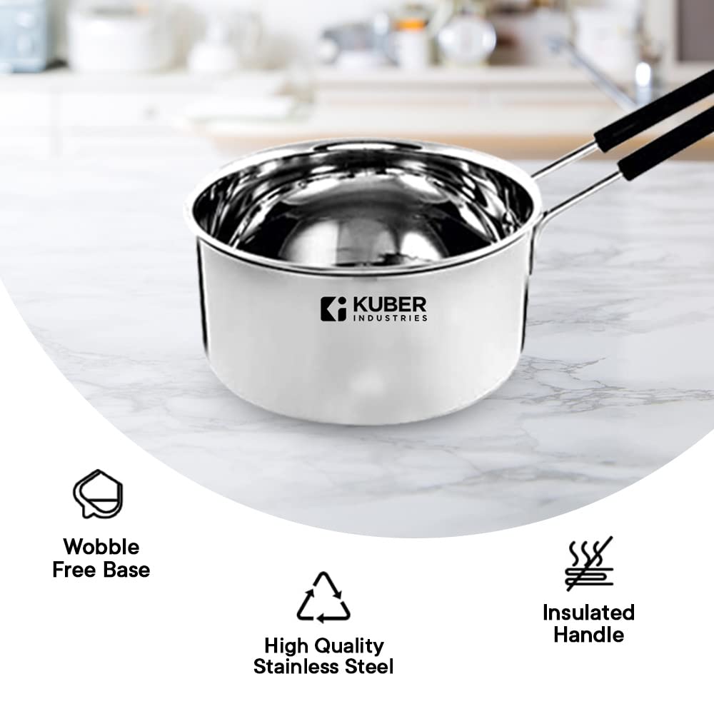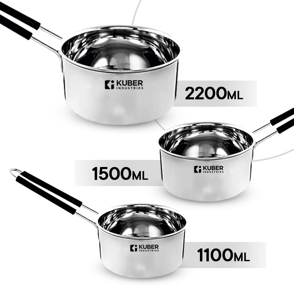 Kuber Industries brings you a range of cookware, dinnerware and kitchenware. These gas stoves are made with high quality toughened glass tops, making it break proof and long lasting. The manual ignition knobs and pan support stands have been designed for functionality, allowing for spill proof, safe and easy cooking. This gas stove 2 burners is made of cast iron which provides ample heat radiation, supporting uniform cooking. The sturdy and compact structure makes this stove easy to clean and has been designed to occupy minimal space on your kitchen countertops. On the other hand, Kuber Saucepan cum milk pan set is made of high quality stainless and comes with sturdy and insulated handles, allowing for easy holding and cooking. Their wobble free base and glossy finish gives an elegant touch to your stainless steel kitchen cookware. Available in a set of 3, these steel saucepans are highly durable and easy to clean, making it the perfect cooking set for your kitchen.Detailed Specifications: