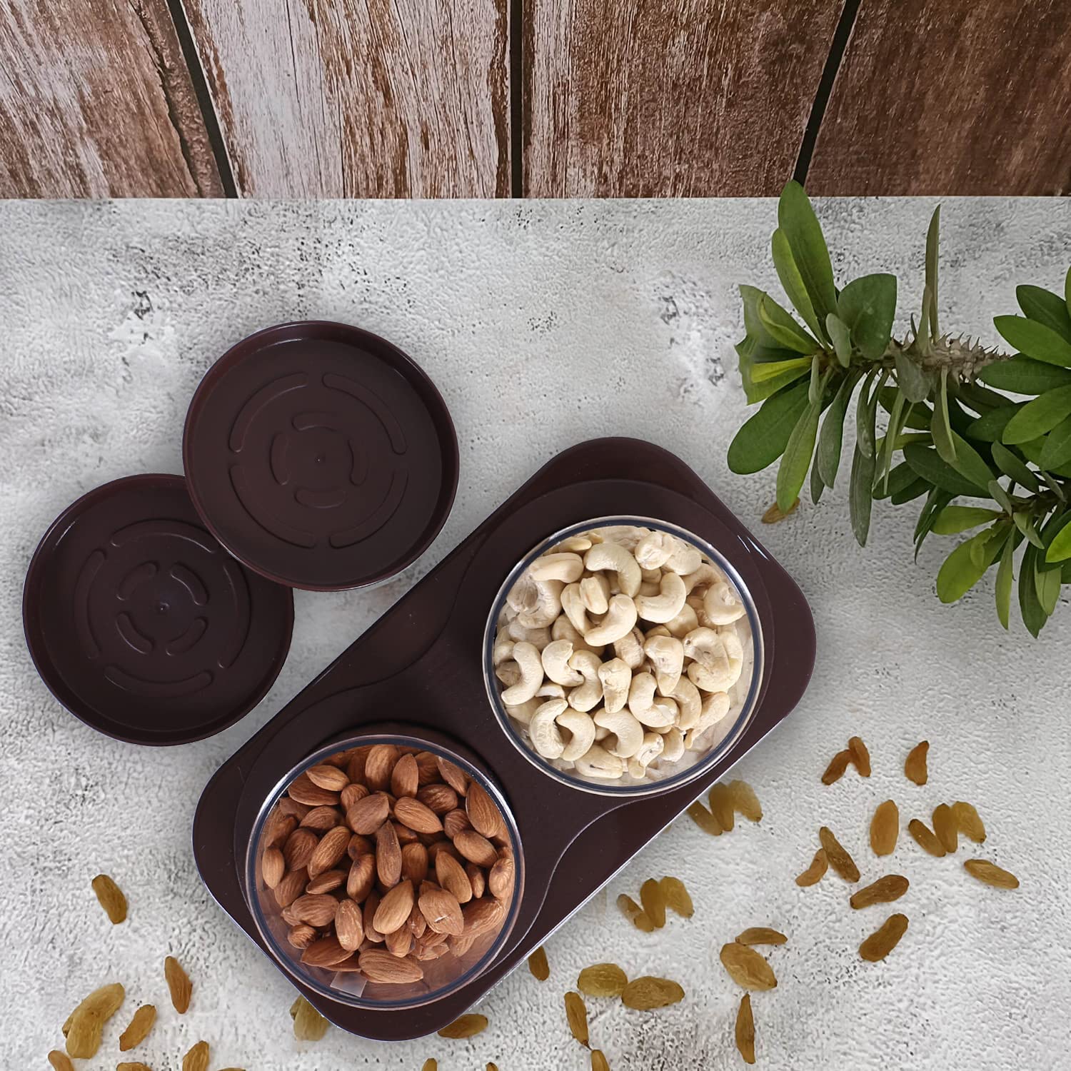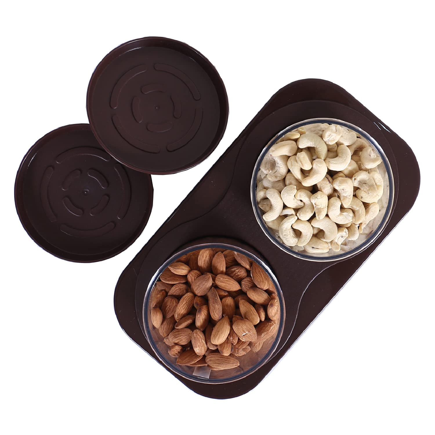 Kuber Industries Brings to you this great way of snackers, cookies, serving trays. It can easily handle any type of dry fruits you have. The most important thing about this set is that the bowls kept in it do not roll here and there, but will be kept in their place in a calm manner. It is made of hard plastic, so even if it falls, there is no risk of breaking. Don't worry! Your cookies inside this set are not going to spoil and its unique texture and airtight function will leave you worry-free.Detailed Specifications: