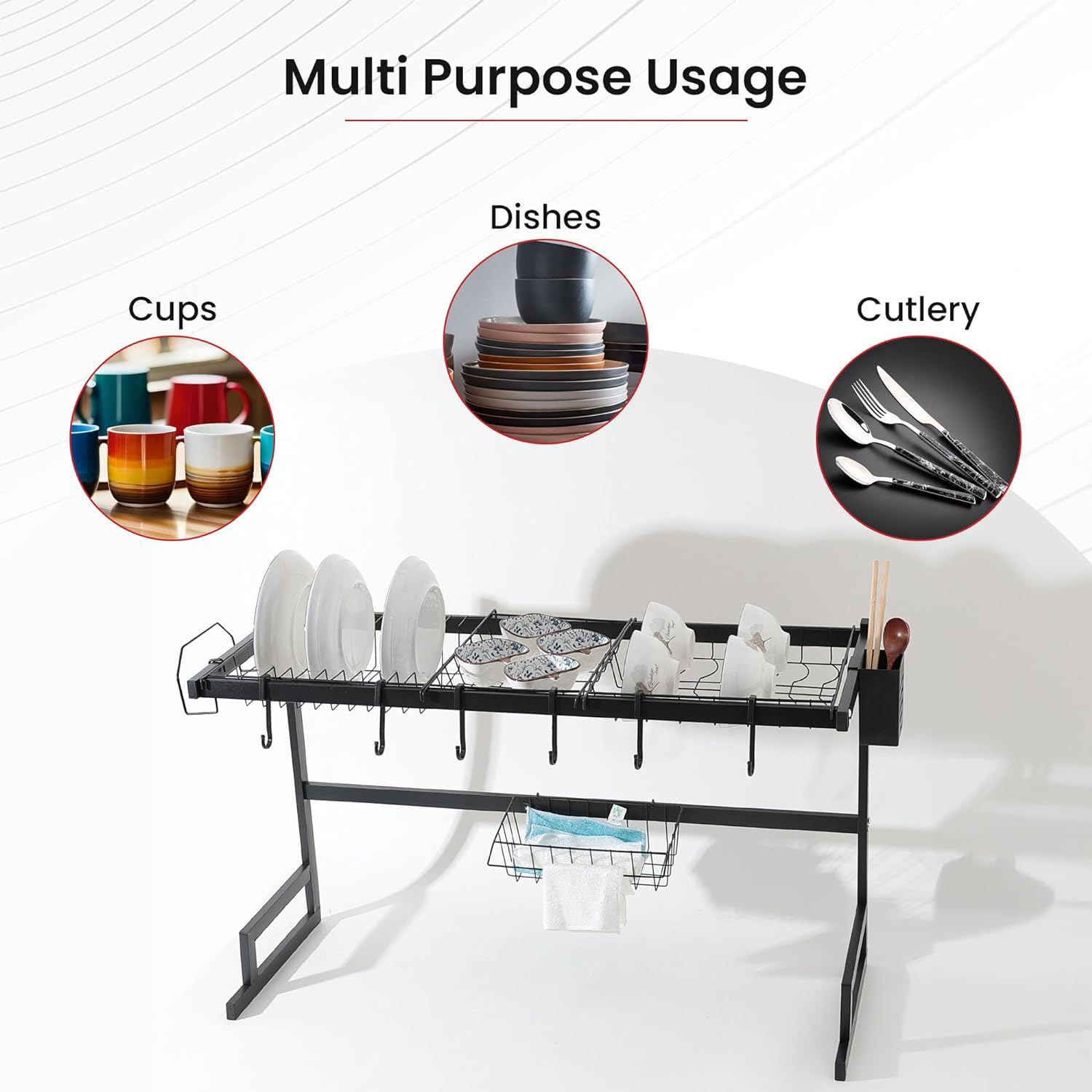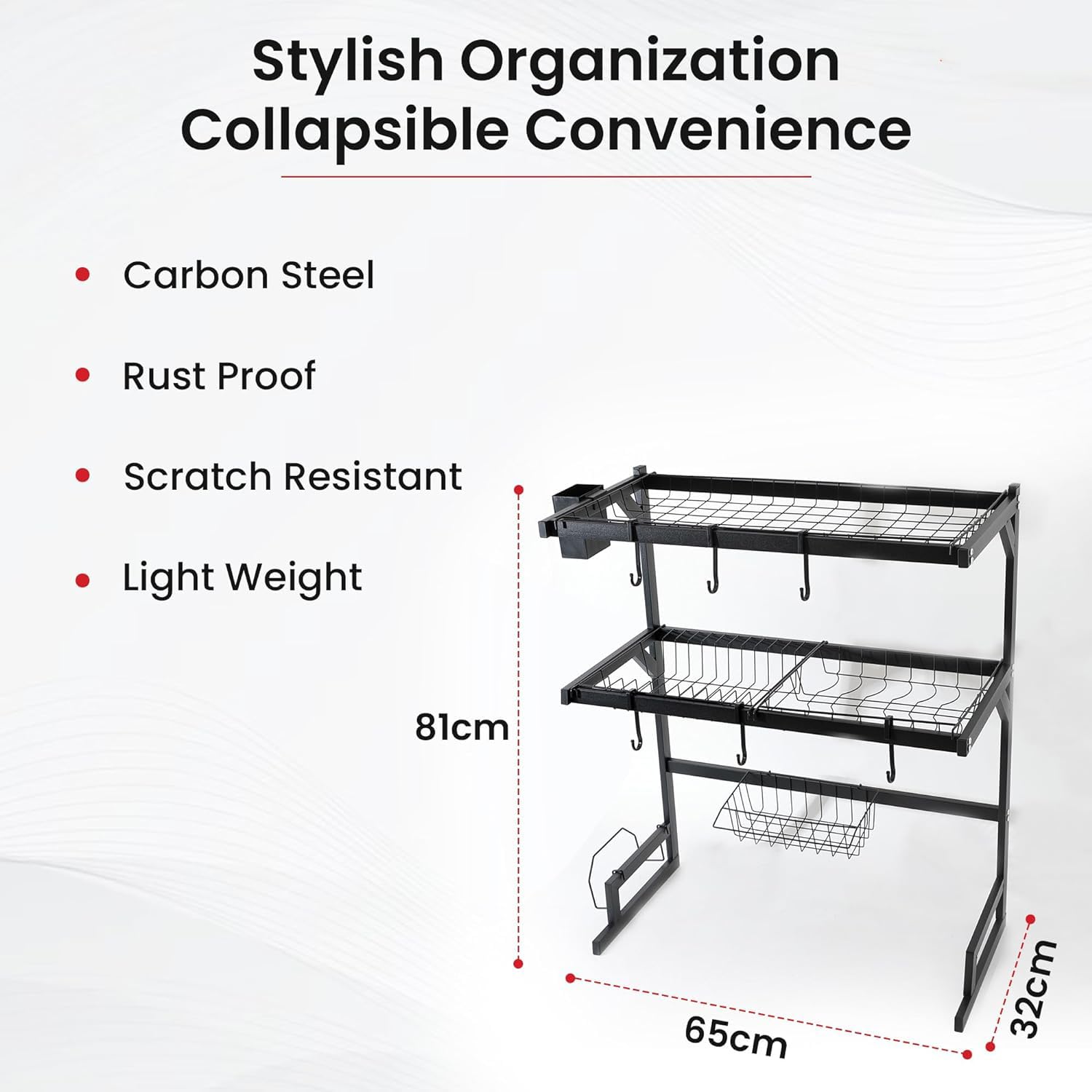 Kuber Industries Two-Layer Dish Drying Rack is a kitchen essential that combines efficiency and versatility. Its design prioritizes efficient drainage with a built-in drainboard, keeping your countertop dry and preventing bacterial growth. The multi-functional use of this rack extends beyond drying dishes, allowing you to store and organize various kitchen items. Constructed for stability, it features non-slip feet to ensure that your dishes and cookware remain secure. Its space-saving design is perfect for compact kitchens, as it maximizes vertical space while providing ample room for drying and storage.Detailed Specifications: