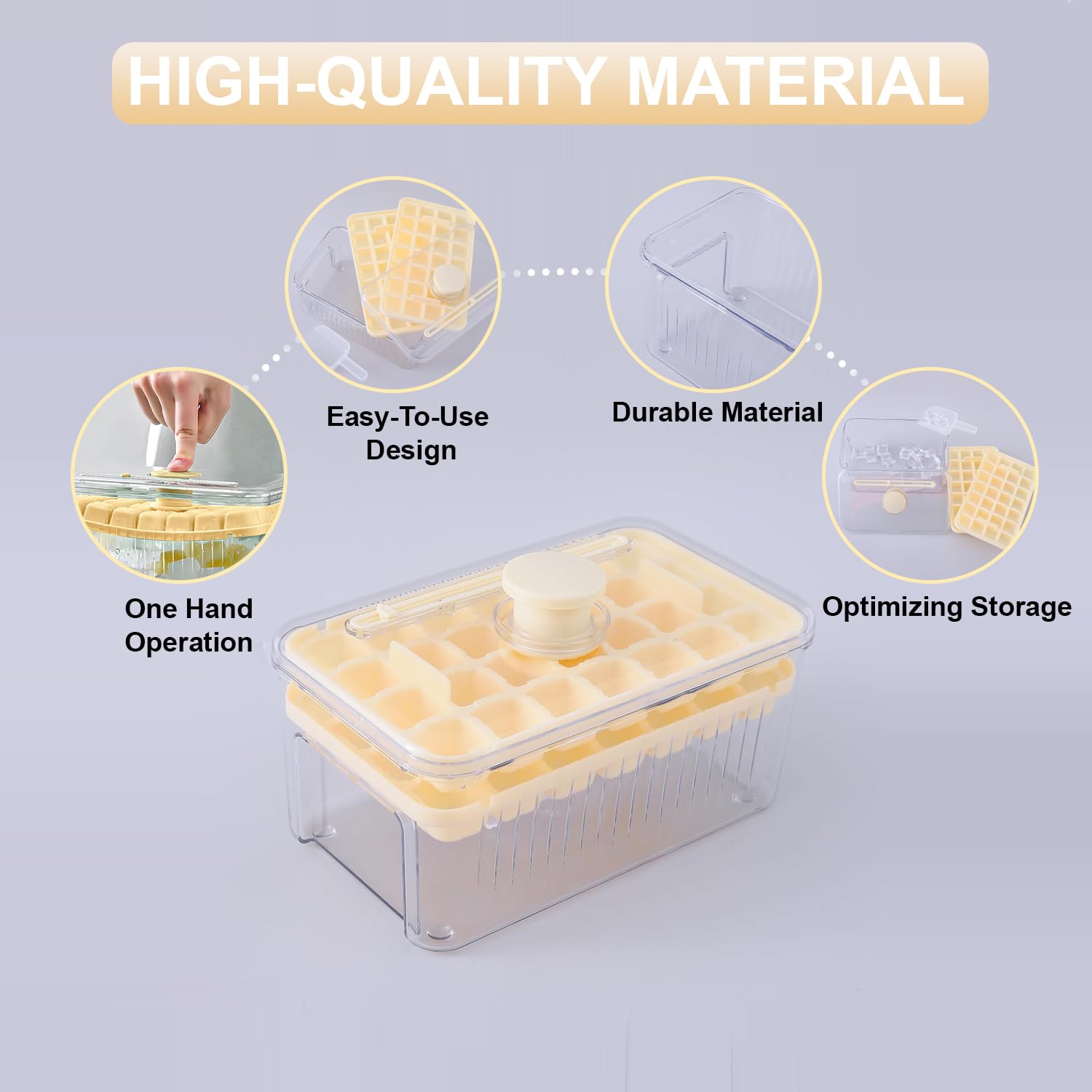 The 2 Layer Ice Cube Tray with Lid – a revolutionary kitchen accessory designed to streamline your ice-making process and elevate your beverage experience. Crafted with precision engineering and innovative design, this ice cube tray offers unparalleled convenience, versatility, and efficiency, making it a must-have addition to any modern kitchen. At the heart of this innovative ice cube tray is its unique two-layer design, which sets it apart from traditional single-layer trays. This dual-layer construction allows for the creation of multiple batches of ice cubes simultaneously, effectively doubling your ice-making capacity and reducing the time required to prepare ice cubes for your favorite drinks.Detailed Specifications: