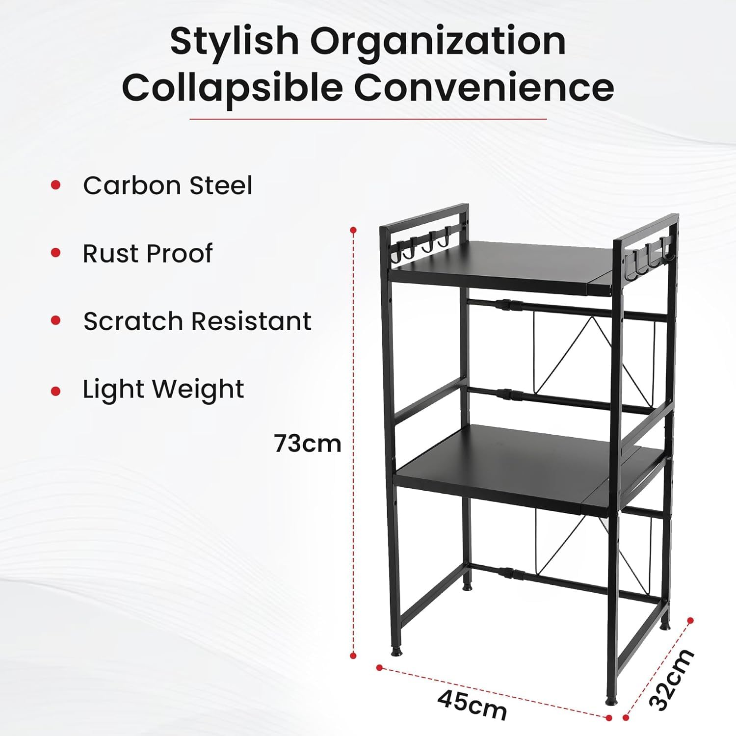 Kuber Industries Microwave Oven Rack is a space-saving corner storage solution, featuring a robust and durable construction. Its thick and sturdy material ensures stability, making it a reliable platform for your microwave oven or other kitchen appliances. The rack's collapsible design allows for convenient storage when not in use, making it an excellent space-saving option. Additionally, it offers multi-purpose functionality, serving as a versatile storage solution for various kitchen items, from appliances to dishes and utensils.Detailed Specifications: