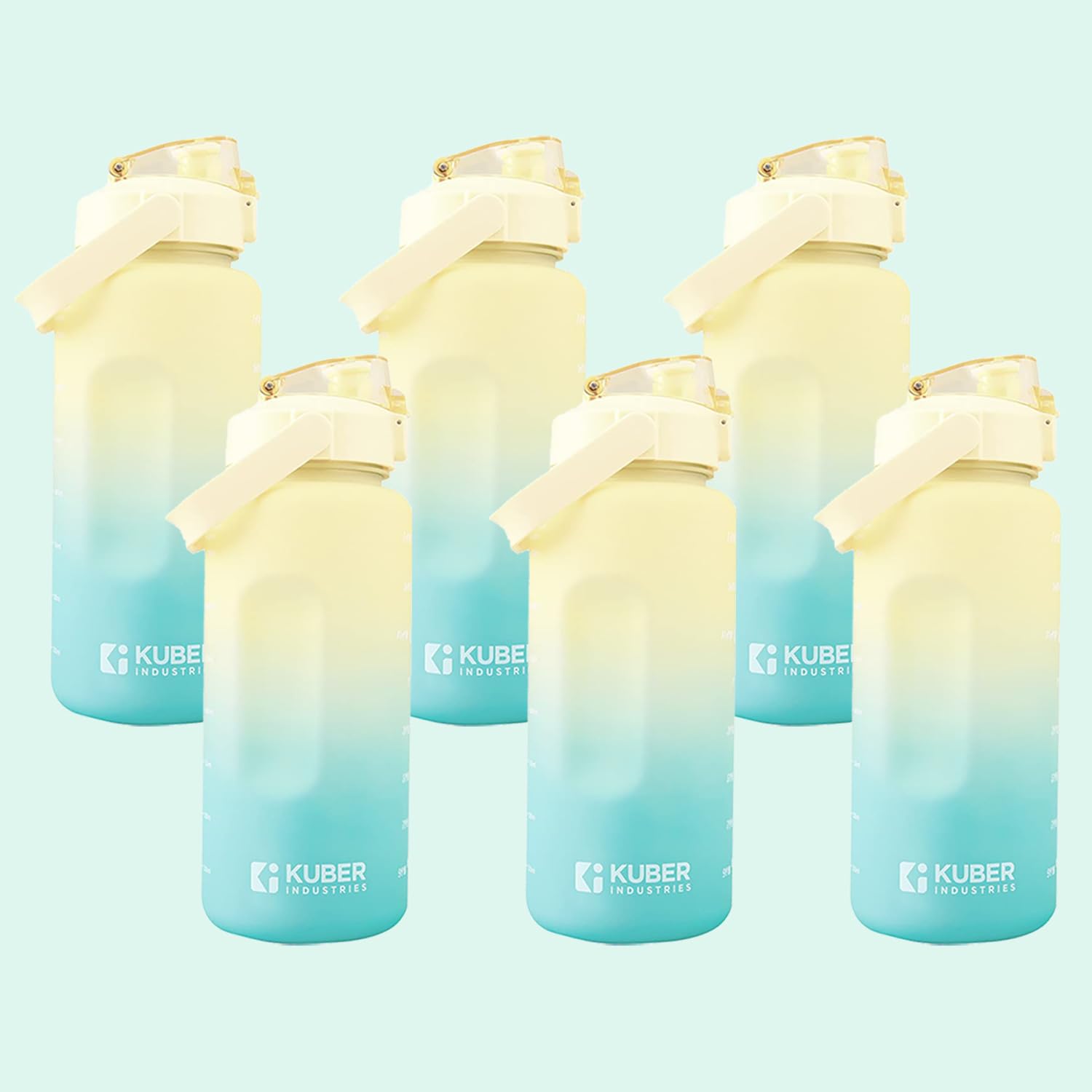 Kuber Industries brings you a range of BPA-free plastic bottles for your daily hydration needs. Made of high-quality and non-toxic materials, this 2 litre water bottle ensures safe drinking habits for you and your family. Its stylish design with motivational quotes and time markers acts as an hourly reminder and measures your daily intake of water, ensuring you stay hydrated throughout the day. The flip-top lid with straw makes this bottle leakproof, making it an ideal water bottle for gym and school. Its wide-mouth design allows you to add ice cubes, ensuring you never miss out on chilled water on the go. Available in 5 colour combinations, this is the perfect kids water bottle for girls and boys alike.Detailed Specifications: