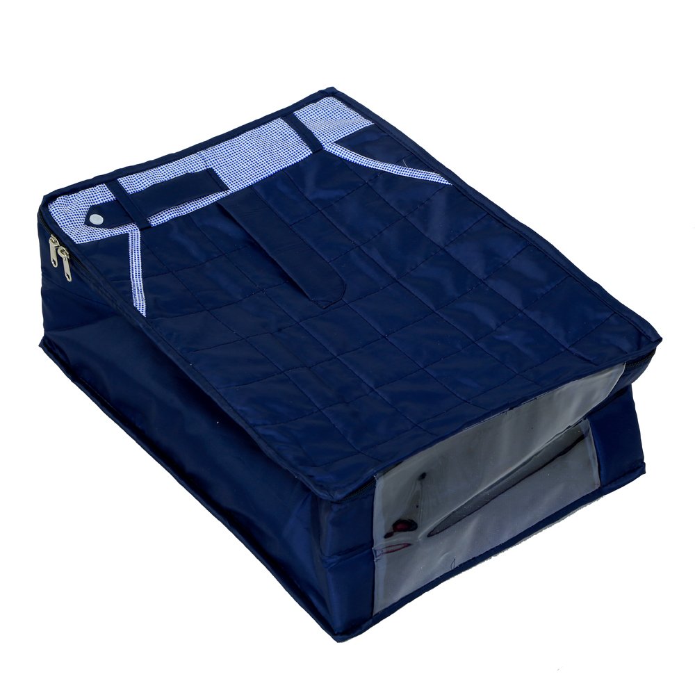 One of the very unique and stylish shirt cover and trouser cover set of set of 2 pcs. It can accommodate upto 8-12 shirt or any other cloth. This is made up of high quality cotton material to give you soft touch. It is a pack of 01 shirt cover. An ideal way to gift to someone. Shirt cover and trouser cover made up of super fine cotton material with side transparent cover for viewing. Dimension- 44*29*15 cm (shirt cover) and 45*33*15 cm (trouser cover). Attractive blue color with textured border line. Can easily accommodate your 8-10 shirt and 6 to 8 trousers. Strong and firm 03 side zipper for speedy storage. It is a multi-utility cover:: can also be used to store different garments.Detailed Specifications: