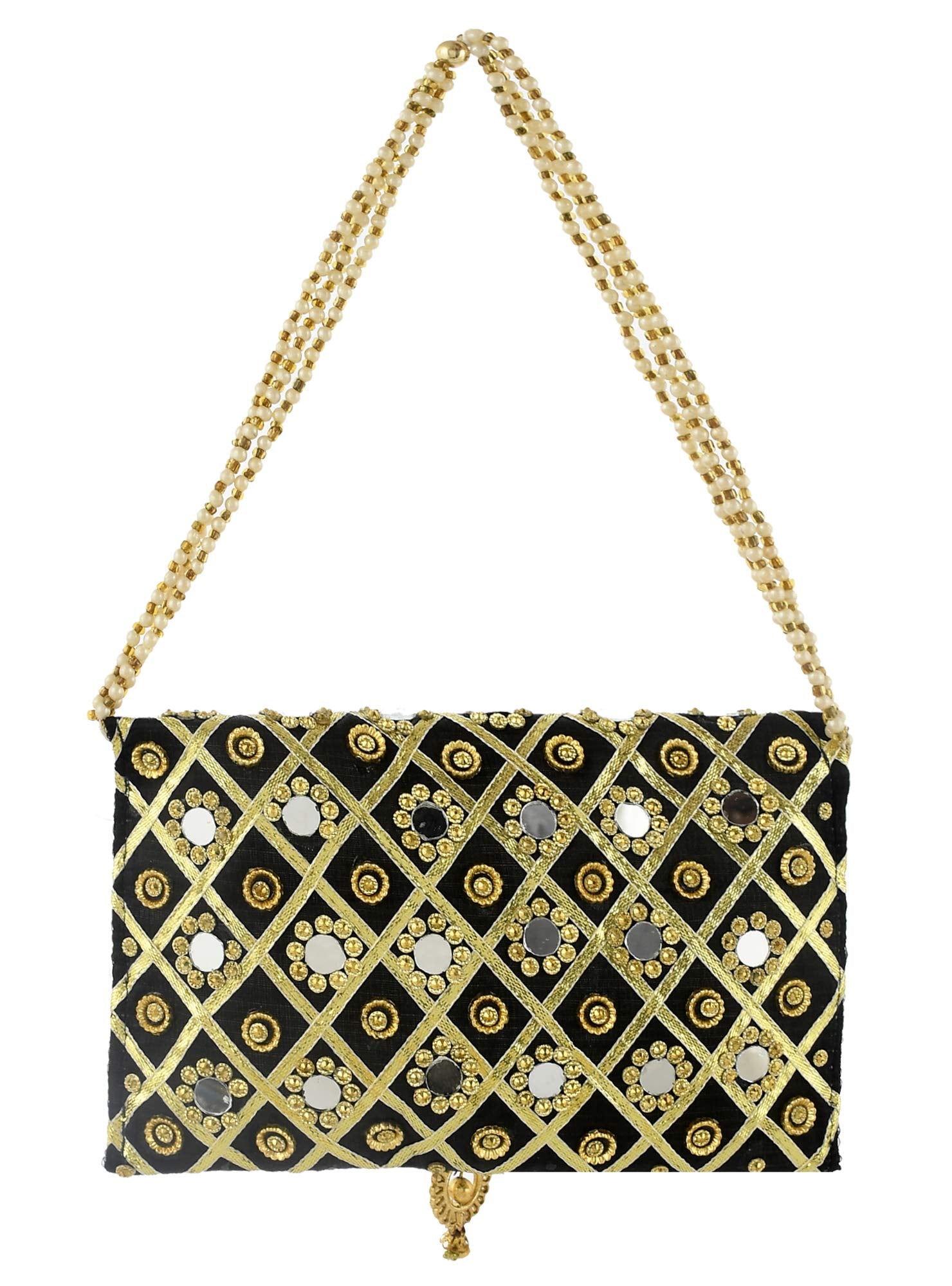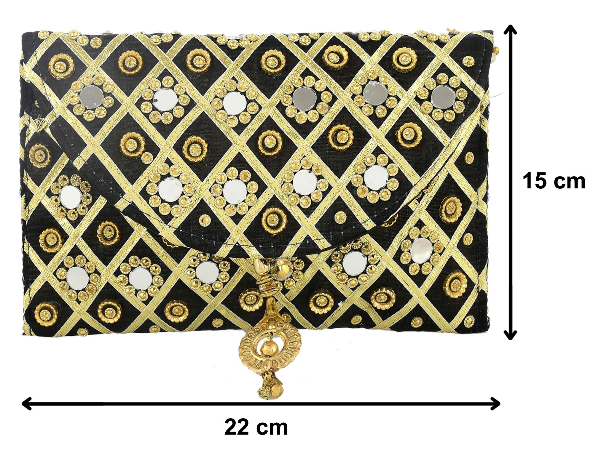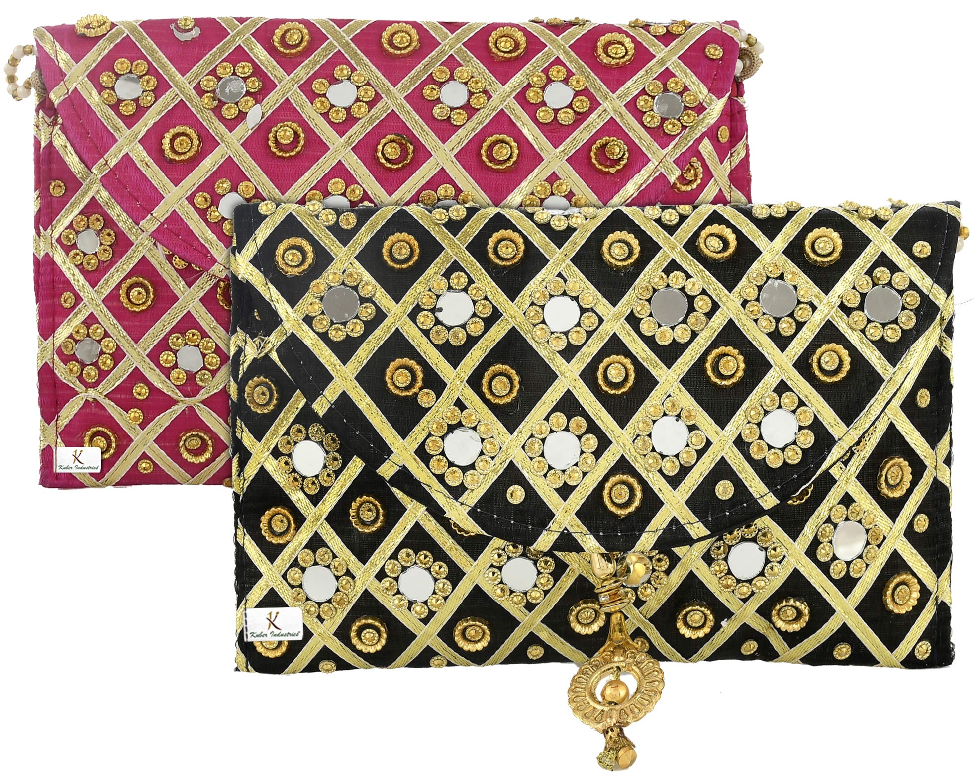 Included Components : | 2 Pieces Silk Traditional Mirror Work Envelope Clutch/Hand Purse Bag For Women/Girls |