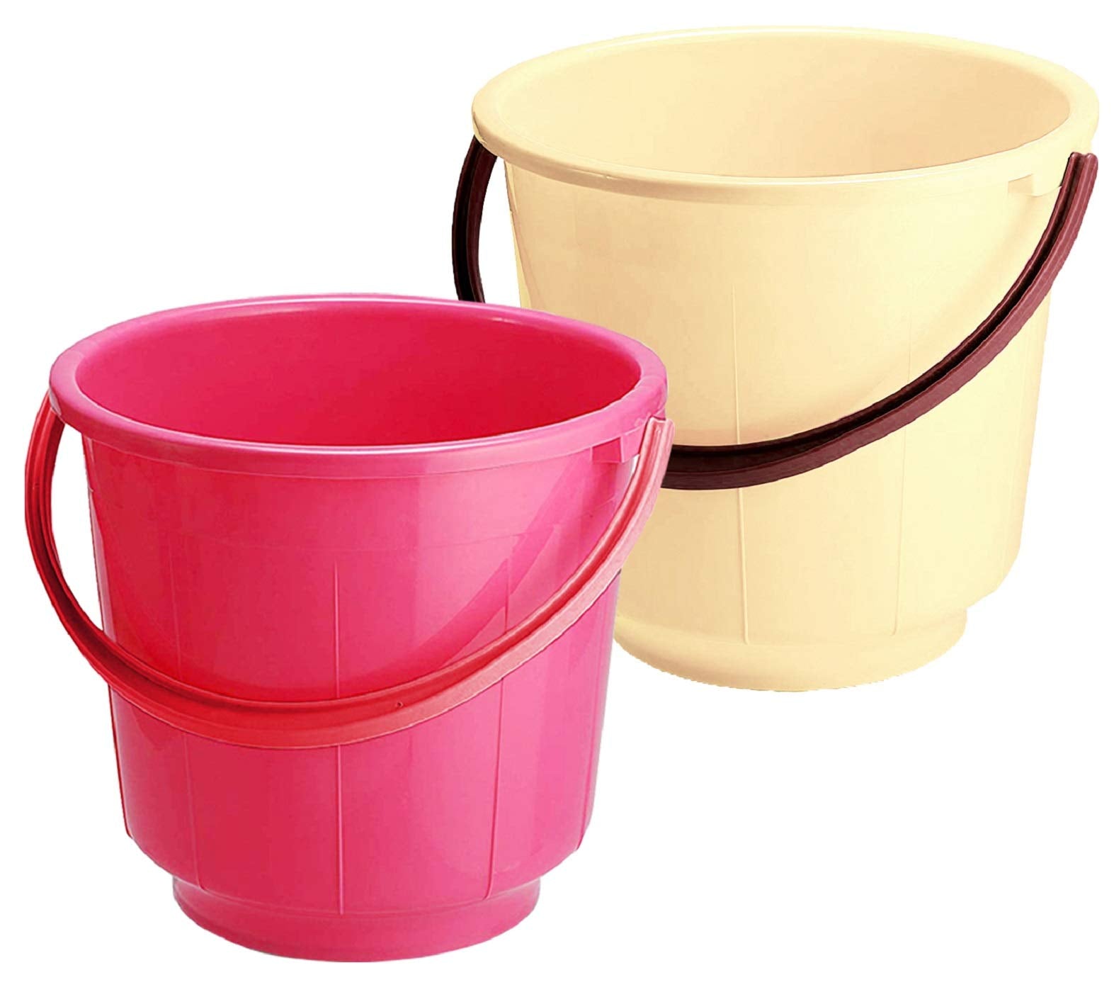 Kuber Industries Plastic Bucket is made of plastic material. This has a strong, sturdy body and beautiful design. You can use it to storing water and other liquid.This bucket is very handy while using it for cleaning your floor. This bucket comes with comfortable handle for easy grip.The handle has been fitted into the bucket grooves which are inbuilt. This is reusable and the extra strong feature help the bucket with long life.Package Contents: 2 Pieces Bathroom Bucket 13 LtrMaterial: Plastic, Color: Pink & CreamDetailed Specifications: