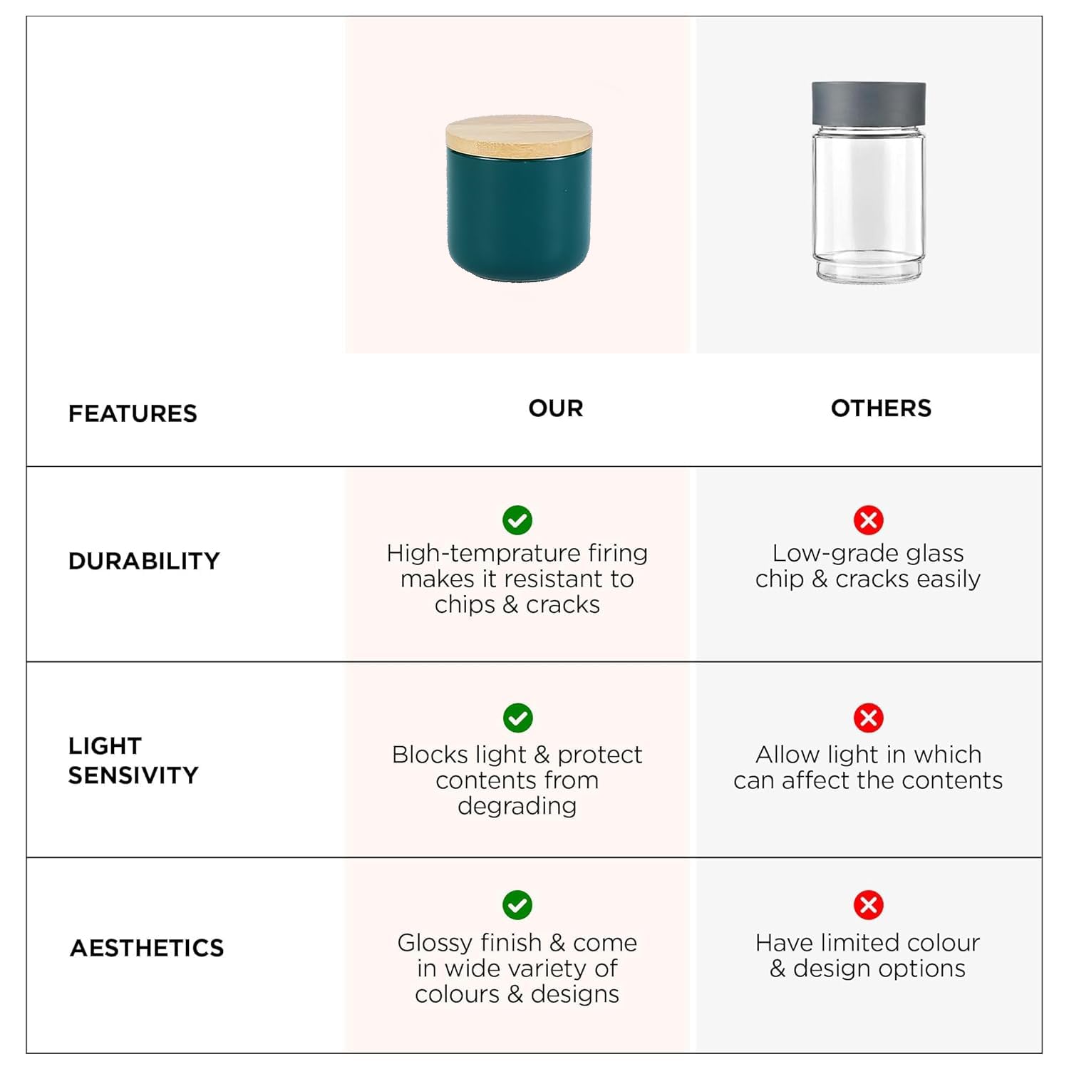 Introducing the Kuber Industries Ceramic Jar with Bamboo Lid, your ultimate solution for stylish and practical kitchen storage. Made with high-quality ceramic material, this jar features a bamboo lid with a silicone ring for a secure seal, keeping your ingredients fresh and free from moisture and dust. With a wide mouth and glossy finish, this 260ml jar is not only aesthetically pleasing but also environmentally friendly, being made from sustainable materials. Its stackable design and large capacity make it perfect for storing a variety of items such as tea, coffee, snacks, sugar, salt, pulses, spices, and more. The Kuber Industries Ceramic Jar is multipurpose and versatile, ideal for organizing your kitchen essentials and keeping them neatly stored. Whether you need to store pulses, grains, dry fruits, snacks, pasta, or even use it as a sprouts maker box or glass lunch box, this jar has got you covered. Designed for maximum convenience, this jar is air-tight, ensuring the freshness and quality of your ingredients. Its multifunctional properties make it a must-have for any kitchen, providing value for money and lasting durability that customers love. Ideal for mothers, families, and wives, this Ceramic Jar is perfect for both storing and organizing your kitchen items. It is dishwasher safe, BPA-free, dust resistant, and reusable, meeting all your storage needs effortlessly. Say goodbye to lid issues, seal problems, and quality concerns with the Kuber Industries Ceramic Jar with Bamboo Lid. With its superior craftsmanship and attention to detail, this jar surpasses customer expectations, delivering on quality, aesthetics, and functionality. Elevate your kitchen storage with the Kuber Industries Ceramic Jar and experience the perfect blend of style and practicality. Add a touch of elegance to your home and make cooking and organizing a breeze with this essential kitchen accessory.Detailed Specifications: