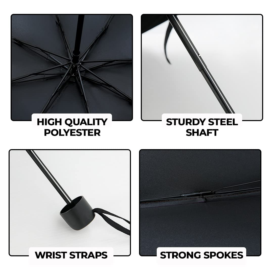 Kuber Industries brings you a range of utility items. This umbrella for man is made with polyester fabric and sturdy steel shaft, allowing it to withstand extreme weather conditions such as high wind speed, heat and rain. The wrist strap on the handle provides extra security while holding and can also be used to hang on hooks when not in use. Its compact and 3 fold design makes this umbrella easy to carry and store in bags, occupying minimal space. Available in an assortment of colours, this big umbrella is large enough to accommodate 2 people, making it the perfect travel companion whenever you step out.Detailed Specifications: