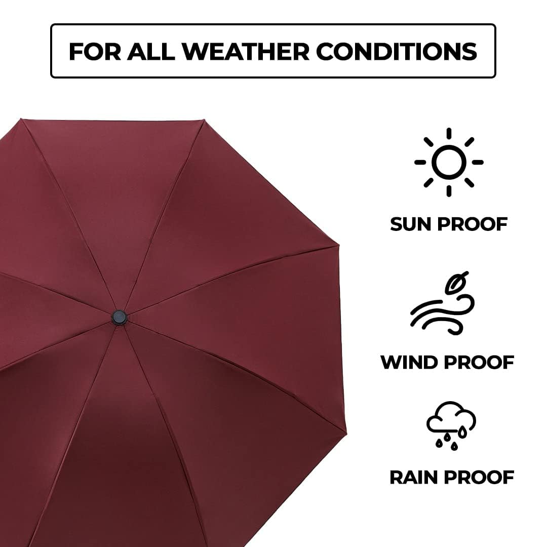 Kuber Industries brings you a range of utility items. This umbrella for man is made with polyester fabric and sturdy steel shaft, allowing it to withstand extreme weather conditions such as high wind speed, heat and rain. The wrist strap on the handle provides extra security while holding and can also be used to hang on hooks when not in use. Its compact and 3 fold design makes this umbrella easy to carry and store in bags, occupying minimal space. Available in an assortment of colours, this big umbrella is large enough to accommodate 2 people, making it the perfect travel companion whenever you step out.Detailed Specifications: