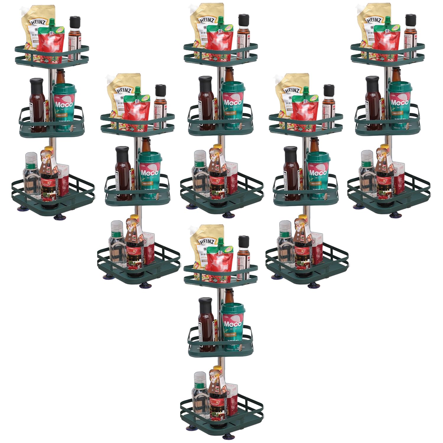 Kuber Industries Rotating Spice Rack is a practical and stylish addition to any kitchen. Its unique circular two-layer design features a 360° rotation, providing easy access to your favorite spices and condiments from any angle. With ample storage space, this spice rack can hold a variety of containers, helping you keep your kitchen organized. One of the standout features of this spice rack is that it requires no installation, making setup a breeze. It's also dismountable, allowing for easy cleaning and reorganization. Crafted from durable carbon steel with a protective paint finish, it's built to last and can withstand the rigors of everyday use. This spice rack not only helps you efficiently organize your kitchen but also adds a touch of sophistication with its sleek design. It saves valuable counter and cabinet space while ensuring that your spices are always within easy reach. Elevate your kitchen organization with the Kuber Industries Rotating Spice Rack. Is this conversation helpful so far?Detailed Specifications: