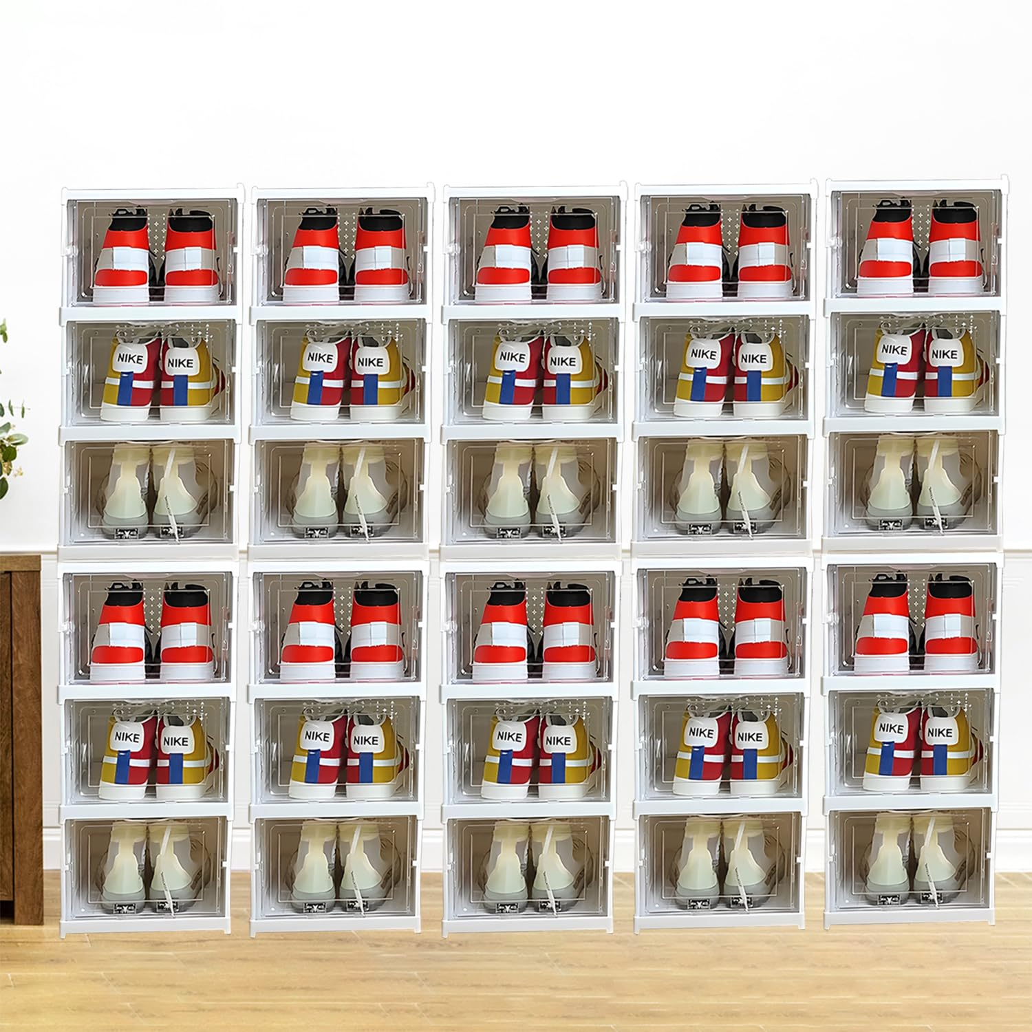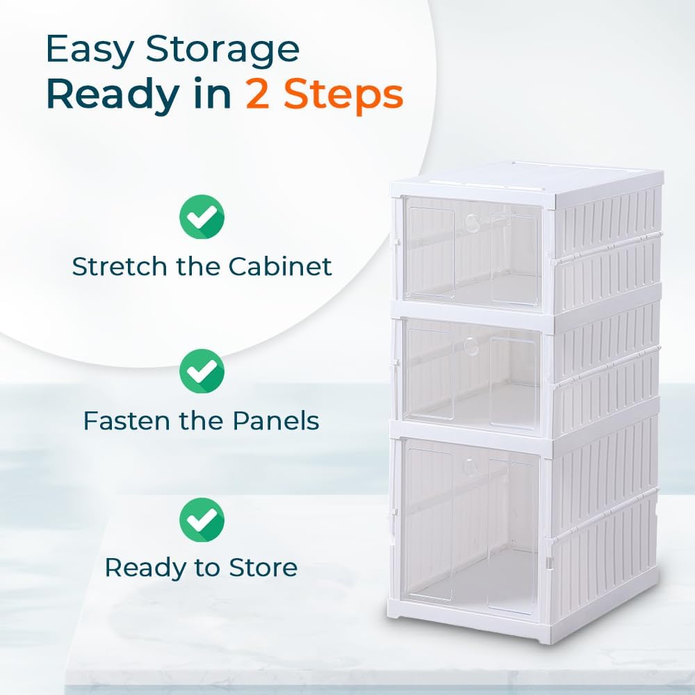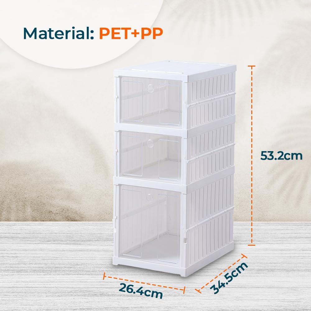 The Kuber Industries 3 Layer Plastic Shoe Box is a game-changer in shoe organization. It offers easy folding for quick setup and storage. With its integrated frame, it maintains its shape even when stacked. The box is stronger with weight, ensuring durability for various shoe types. The building block splicing feature allows customization and expansion of storage. The visual door panel provides easy identification, while strong magnetic suction keeps it securely closed. Experience hassle-free shoe organization with this efficient and versatile shoe box.Detailed Specifications: