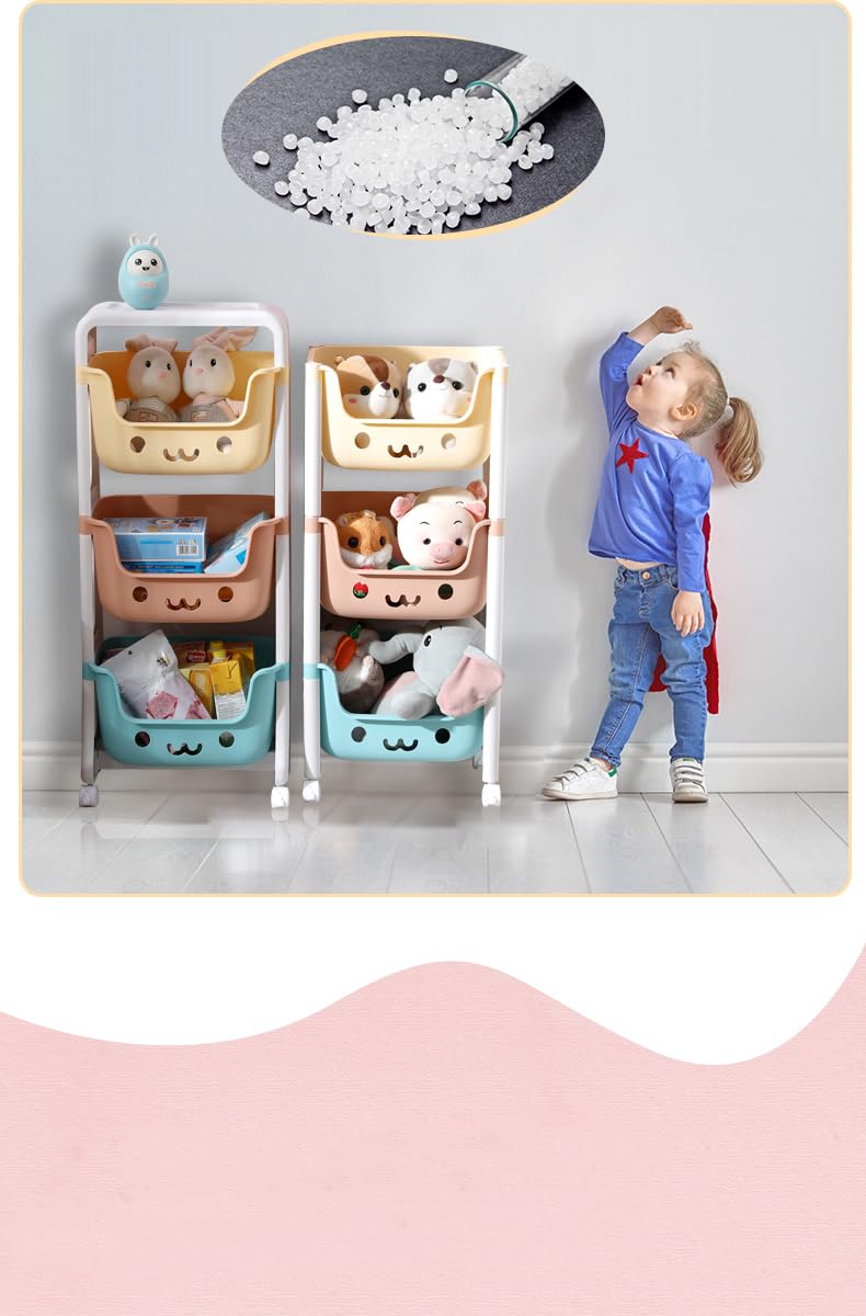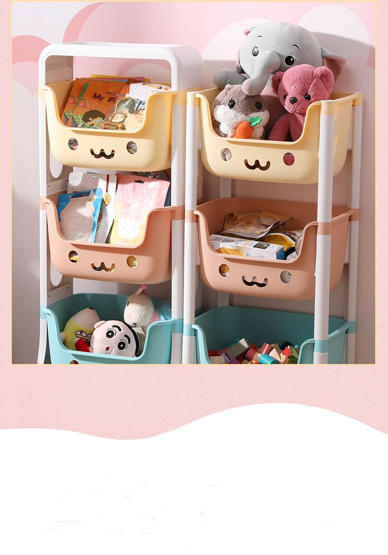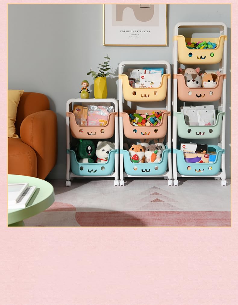 Kuber Industries Children's Storage Rack features a charming smiley design and offers a practical and playful solution for organizing your child's belongings. Made with environmentally friendly materials, this multi-layered storage rack ensures classified storage, making it easier to keep items in order. With its smiling face hollow design, you can quickly glance at the stored items, and the foot brake lock provides added stability and safety.Detailed Specifications: