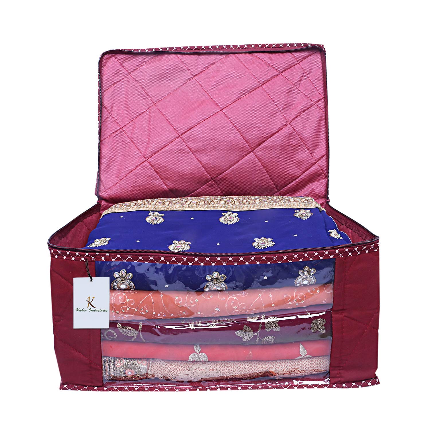 Stylish saree cover in synthetic material with heavy plastic with capacity of 15 pieces each. This product is very helpful to keep all your heavy garments in gifting and regular use. Kuber Industries offers finest fashion accessories that incorporates contemporary designs and modern functions. Kuber Industries brings products for every woman who dreams of being unique and stylish. It offers incredible range of handbags and jewellery boxes for women. Their products are incomparable in terms of quality.Detailed Specifications: