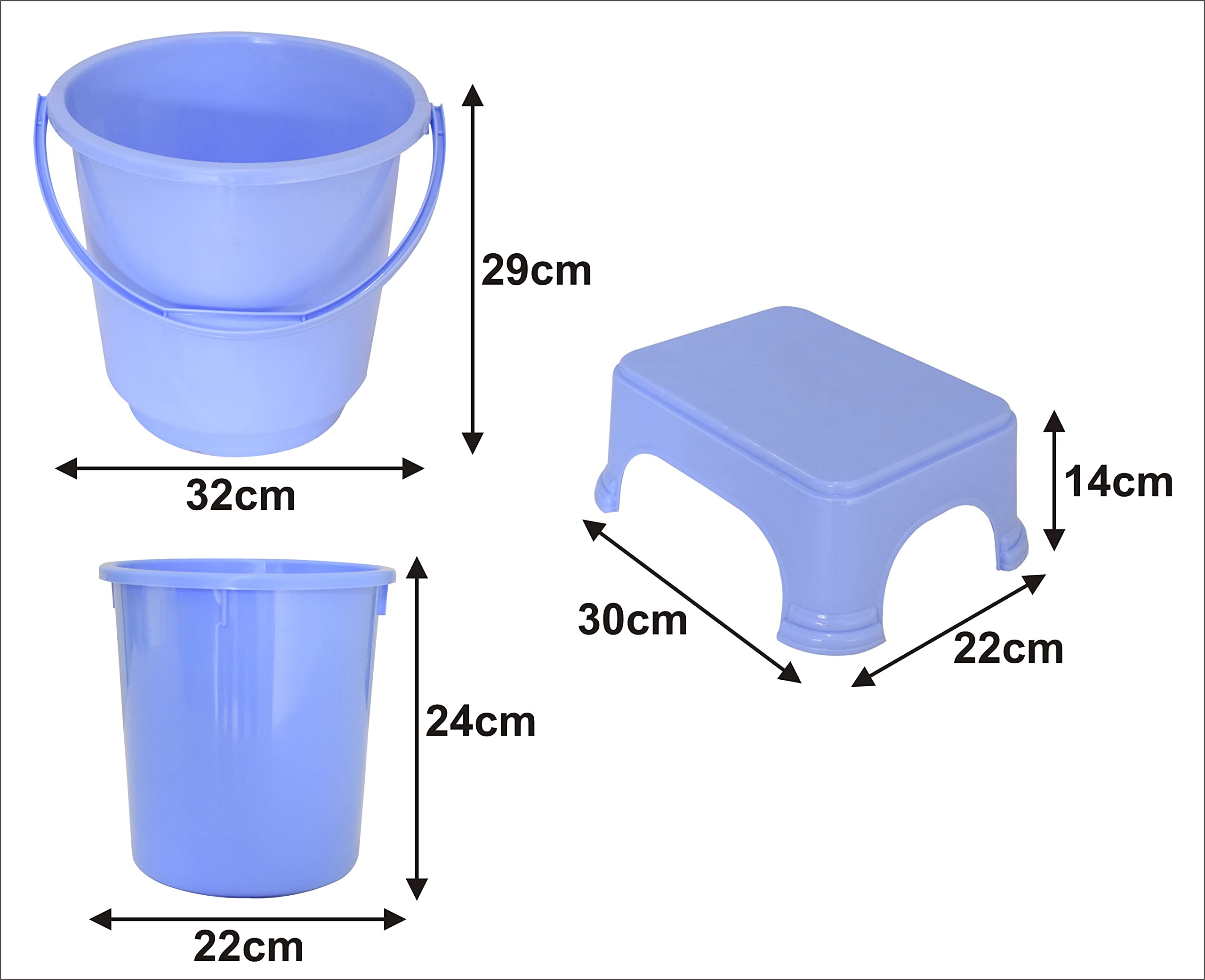 Included Components : | 3 Pieces Bucket, Dustbin & Stool Set |