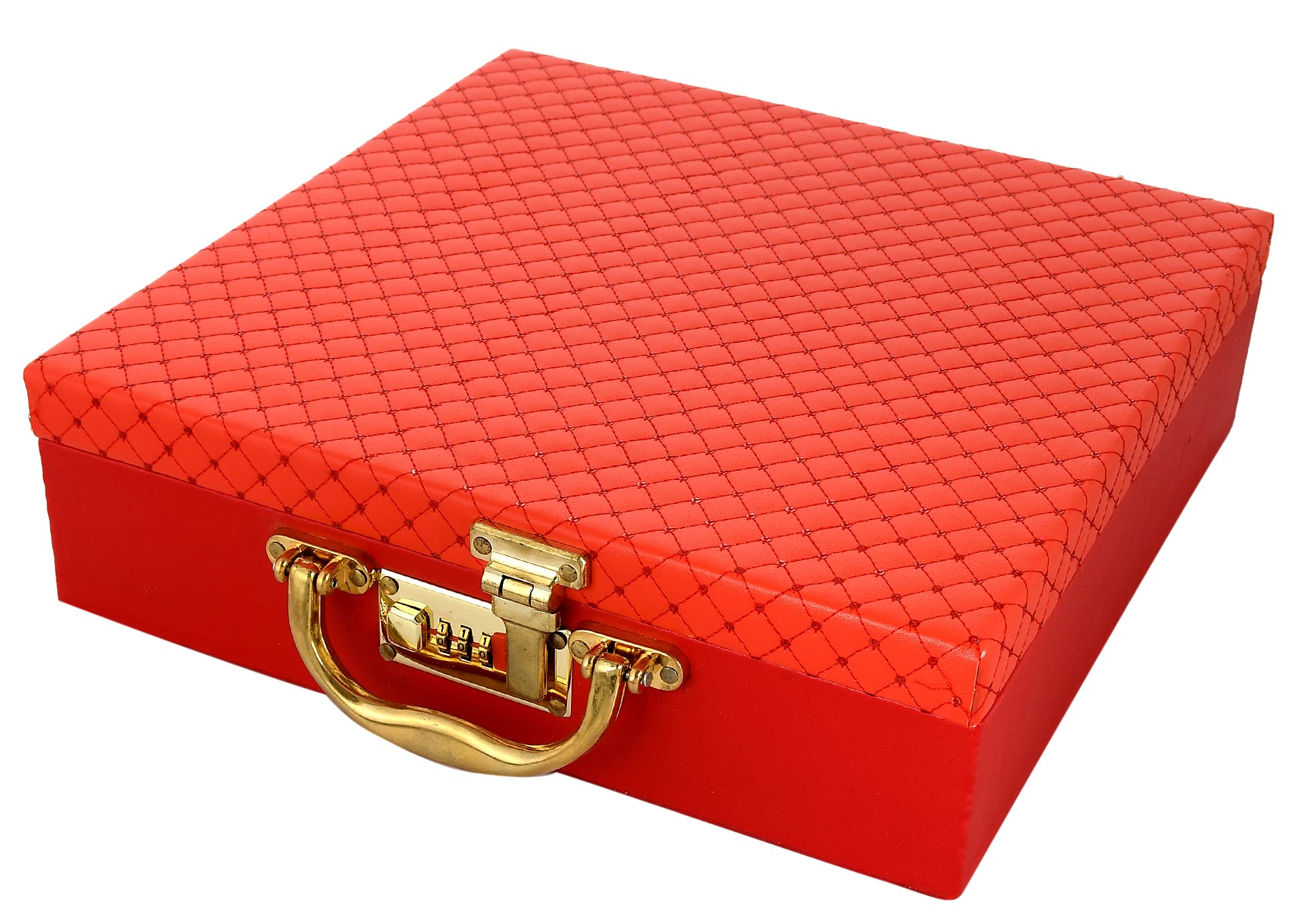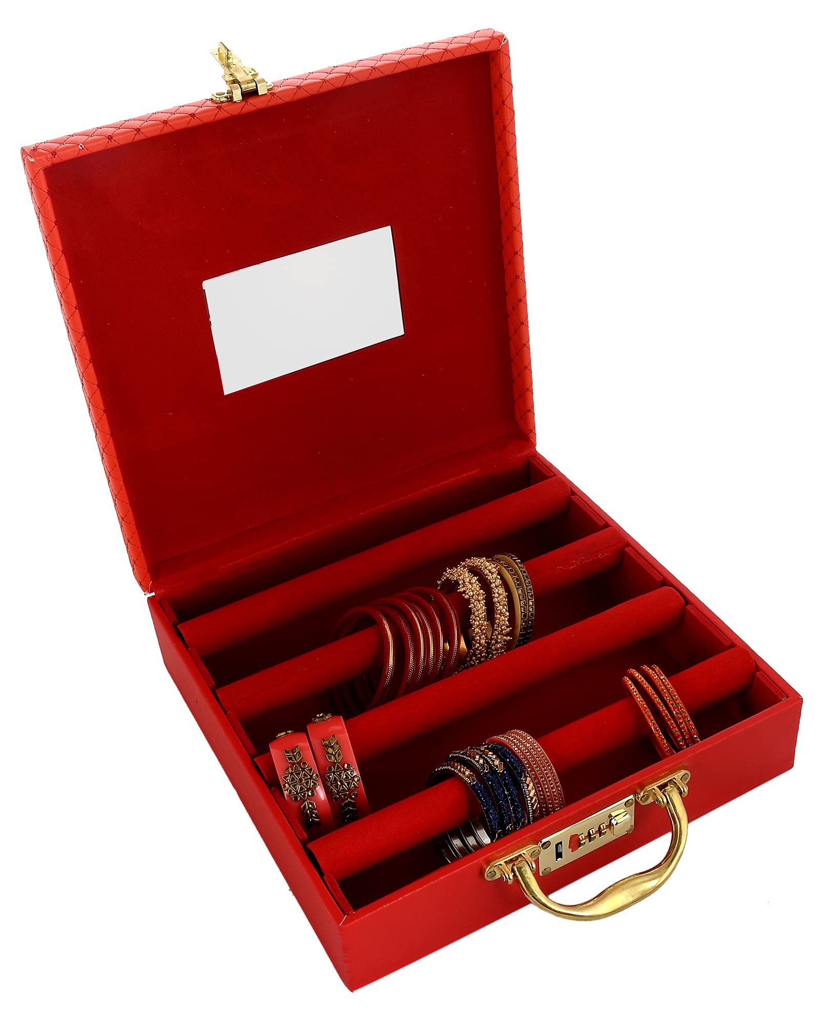 Kuber Industries 4 Rods Bangle Organizer Box Soft Leather Coated Jewelry Storage Case with Small Mirror & Lock System (Gold) (HS_37_LUGGAGE020323)Detailed Specifications: