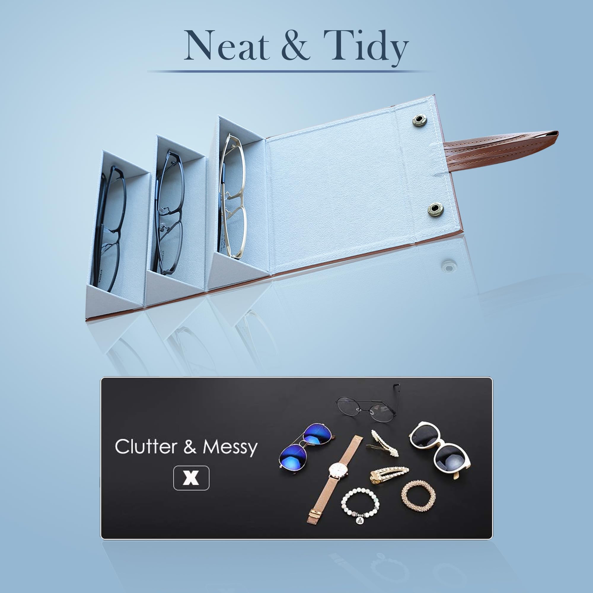 The Hanging and Foldable Sunglasses Organizer is not just a storage solution; it's a stylish addition to your home decor. Crafted from quality materials, it features a sleek and modern design that complements any interior. The organizer comes in a variety of colors and finishes, from classic black and white to elegant wood grain and metallic options, ensuring that it can seamlessly blend into any room’s aesthetic.One of the standout features of this organizer is its ability to make the most of your available space. It offers ample room to store sunglasses. Each compartment is designed to hold sunglasses of various sizes and shapes, from oversized aviators to sleek wayfarers.When not in use, the organizer can be easily folded down to a compact size, making it incredibly easy to store in a drawer or under the bed. This foldable design is perfect for those with limited space or for anyone who enjoys keeping their living area neat and tidy.Detailed Specifications: