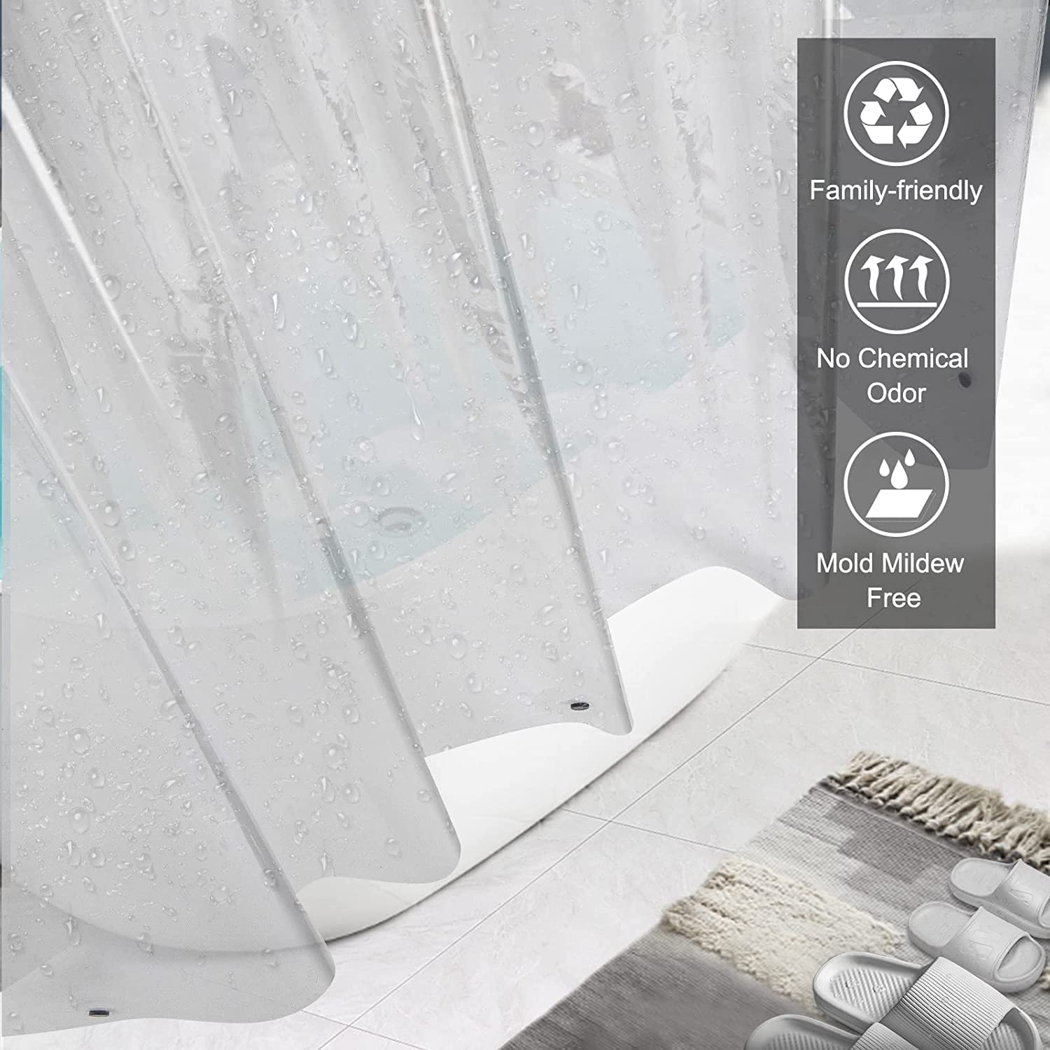 100% WATERPROOFOur curtains is made from premium fabric which is 100% Waterproof and repels water, keeping your bathroom fully clean & dry. The soft but elegant textured drapes will upgrade your bathroom decor with a modern and sleek look, bringing to you a hotel style luxurious environment at home while your daily bath will be a spa like luxury experience that you can not resist. | EYELET RINGSThese curtains hung nicely on a rod with the help of steel eyelets which are very popular, trendy & easily removable during wash. It prevents the fabric from fraying around the holes. | DURABLE MATERIALStandard sized curtains are made from 100% High Quality Material that are made for long last use and make these curtains long lasting. | NON TOXIC MATERIALMade from PVC, this non-toxic shower curtain is odor free - no chemical smell.The curtain is PVC for a healthier bathroom environment for you, your kids and your entire family; Water and soap will glide right off and not collect in hems - keeping the shower liner clean for a safer shower and tub environment. |