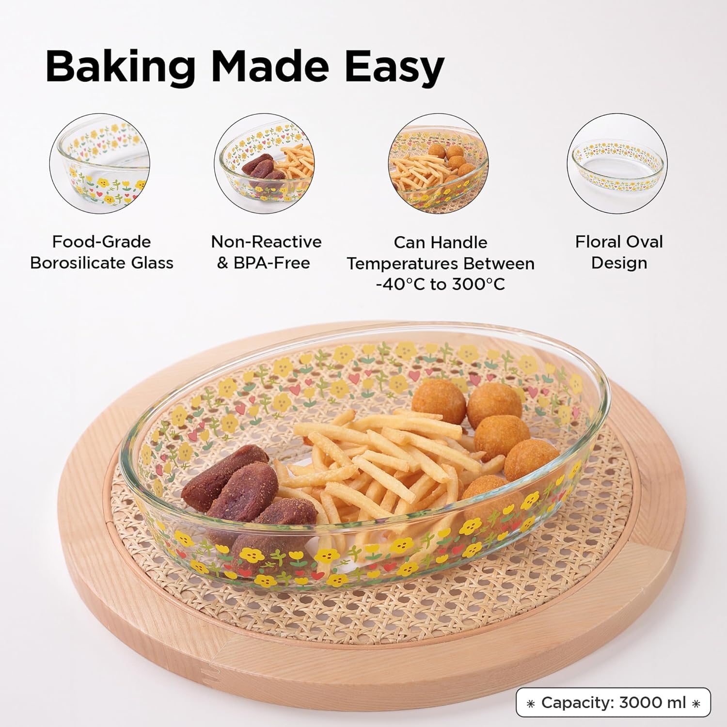 Introducing the Homestic Borosilicate Printed Glass Baking Tray, a versatile addition to your kitchen essentials. This transparent 3000 ml baking tray is not only microwave-safe but also suitable for use in the oven and freezer. Made of high-quality borosilicate glass, this oval-shaped tray is perfect for baking, serving, and storing your favorite dishes. With a glossy finish and non-porous surface, this tray is odor-free, BPA-free, and non-toxic, ensuring that your food remains safe and healthy. The Homestic glass baking tray is easy to clean and dishwasher safe, making it a convenient choice for busy individuals. Whether you're baking cookies, cakes, pastries, or roasting meats and vegetables, this multipurpose tray is perfect for all your cooking needs. You can even use it to marinate, freeze, or grill your favorite dishes. The Homestic glass baking tray is designed to meet all your food preparation requirements. The oval shape and 34.8x24x6.5cm size make it ideal for serving snacks, gratins, or main dishes. Its capacity of 3000 ml allows you to prepare large batches of food with ease. The Homestic glass baking tray is a must-have for anyone looking for a versatile and reliable kitchen utensil. Customers love the Homestic Borosilicate Printed Glass Baking Tray for its durability, functionality, and ease of use. Whether you're a home cook or a professional chef, this baking tray is sure to meet your needs. Don't settle for inferior bakeware – choose Homestic for quality and reliability in every dish you prepare. Say goodbye to flimsy baking trays that warp and discolor over time. The Homestic glass baking tray is designed to withstand high temperatures and repeated use, ensuring that it remains in top condition for years to come. Invest in the Homestic Borosilicate Printed Glass Baking Tray today and elevate your baking experience to new heights.Detailed Specifications: