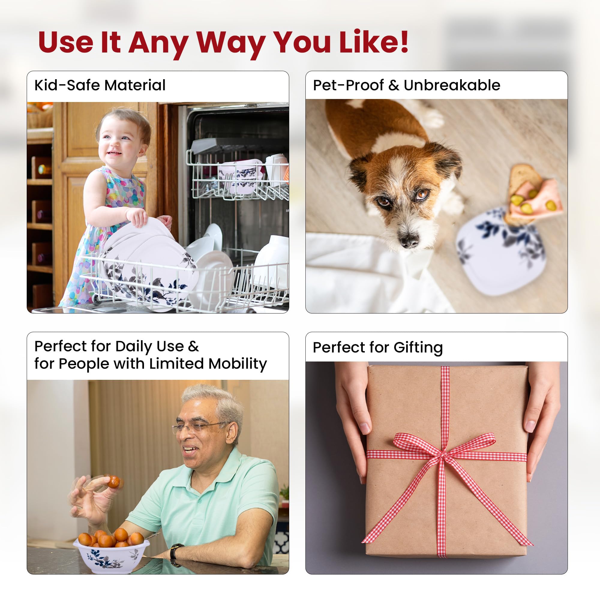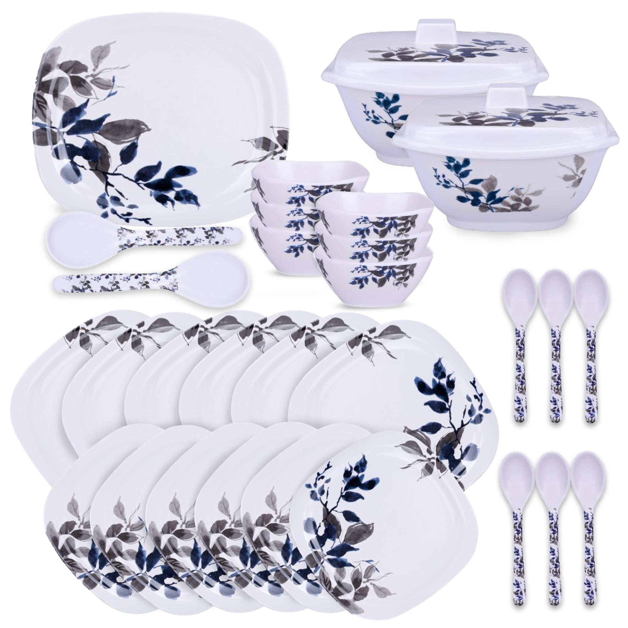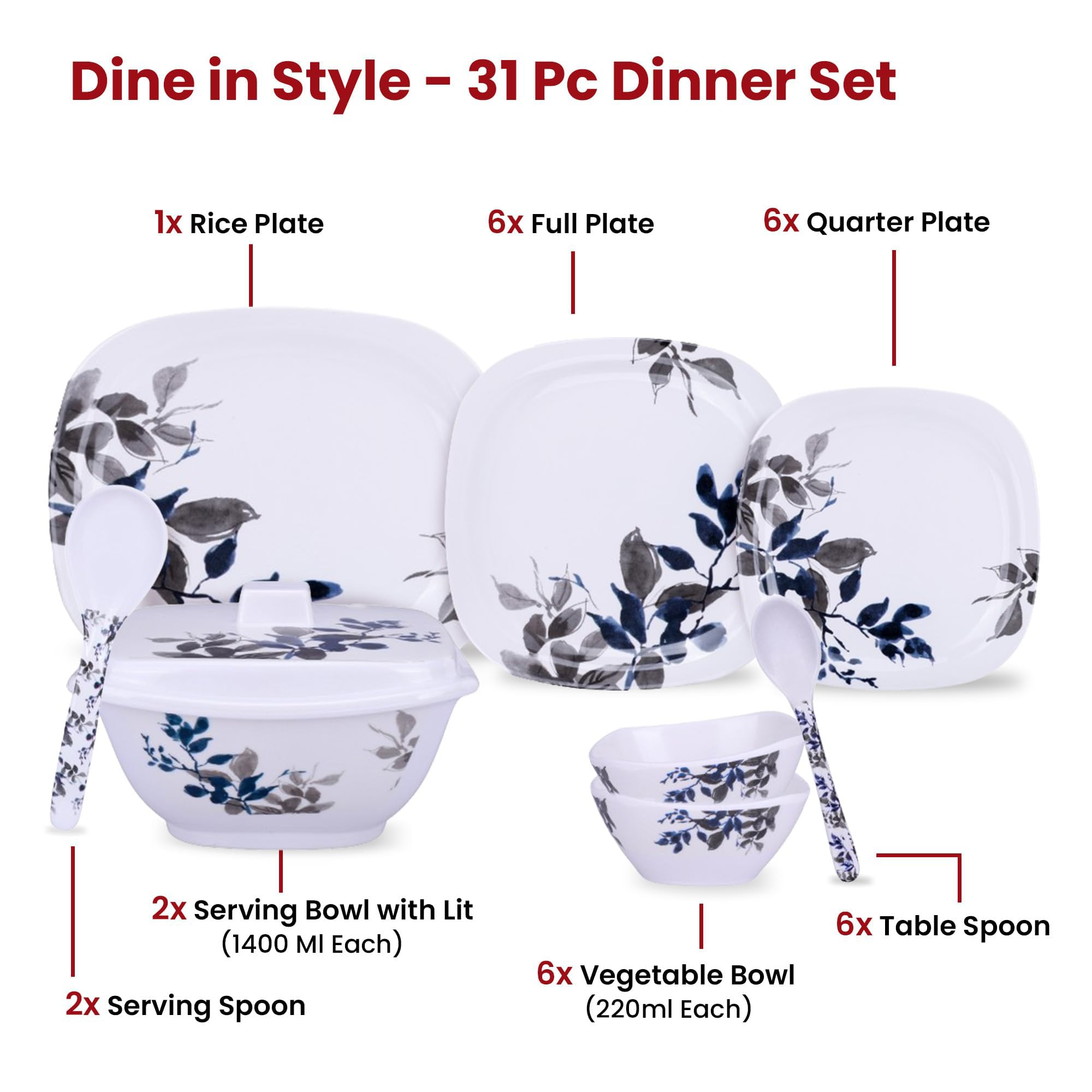 • ✅ Package Contains - (Set of 1, Pcs - 31) Dinner Set | Color - Blue Vine (Bail) - White | Material - Melamine | Product Dimensions - 37X24X31CM
