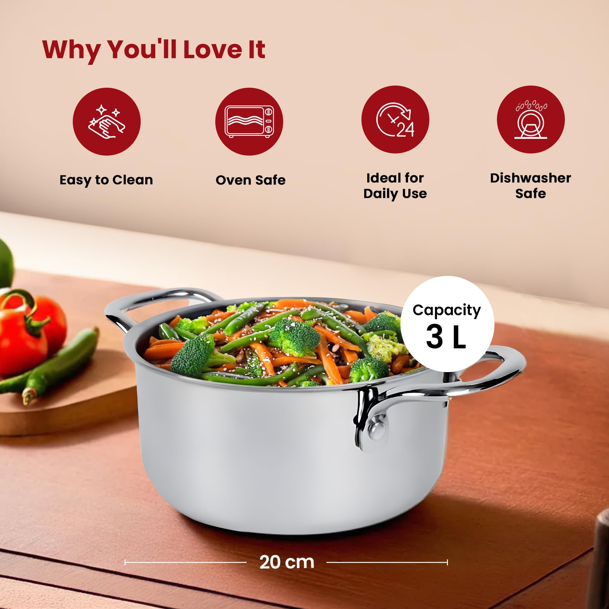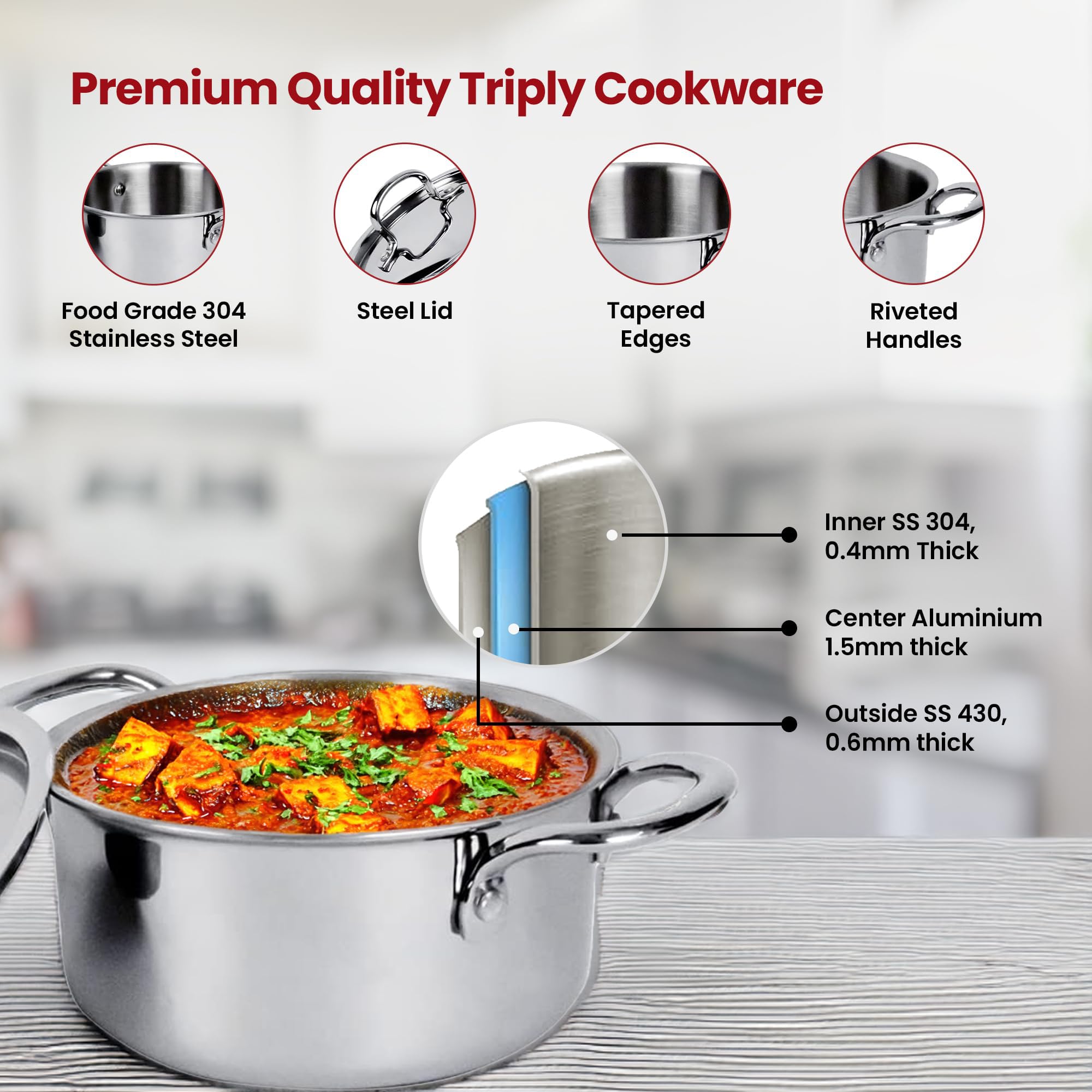 This steel bartan is designed to handle your daily cooking needs. This item can be used for boiling or serving rice, which makes sure you can do more with less. Our tope vessels are made with a heavy-duty gauge stainless steel, which gives it strong durability and ensures the utensil remains safe for induction use. The included lids help keep food warm until it's served while the smooth surface allows for quick and easy cleaning. This rice bowl for cooking vessels makes sure your kitchen tasks are easier without the inconvenience of needing multiple utensils.Detailed Specifications: