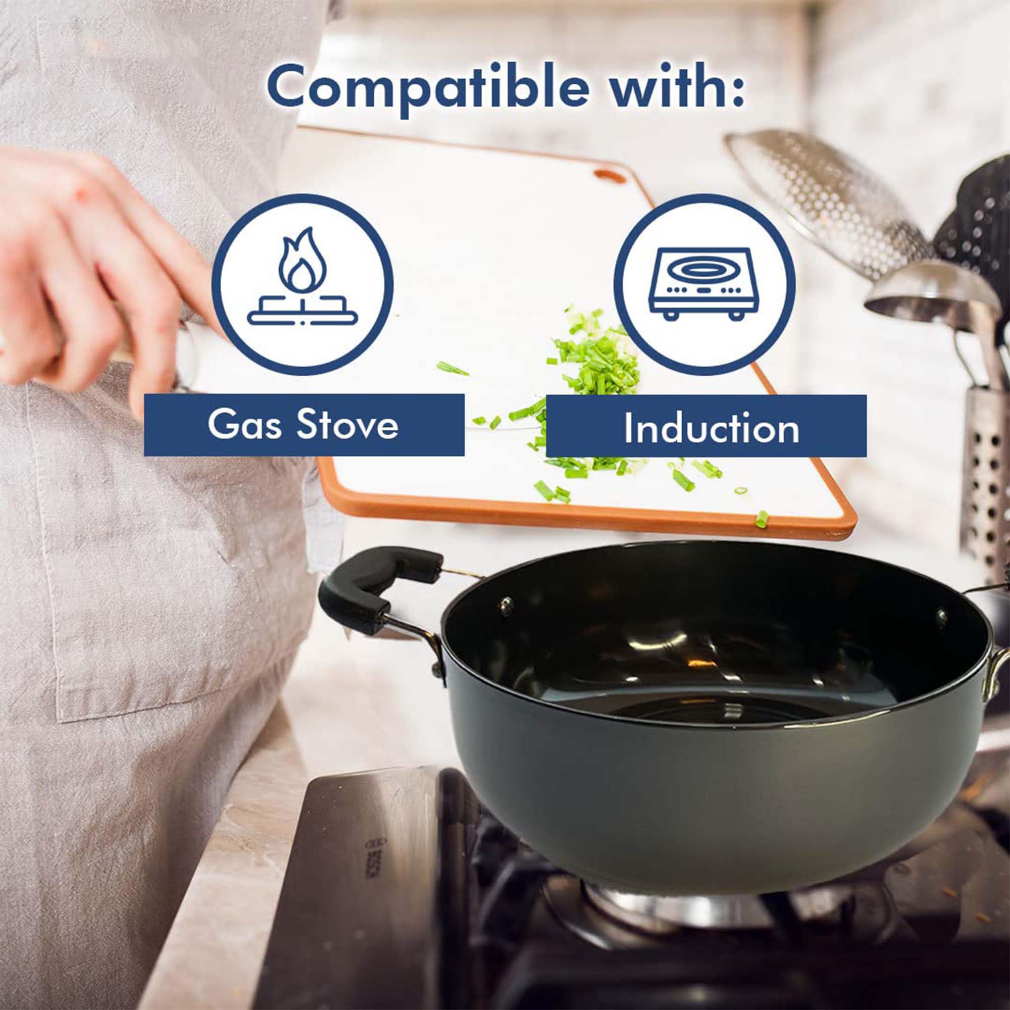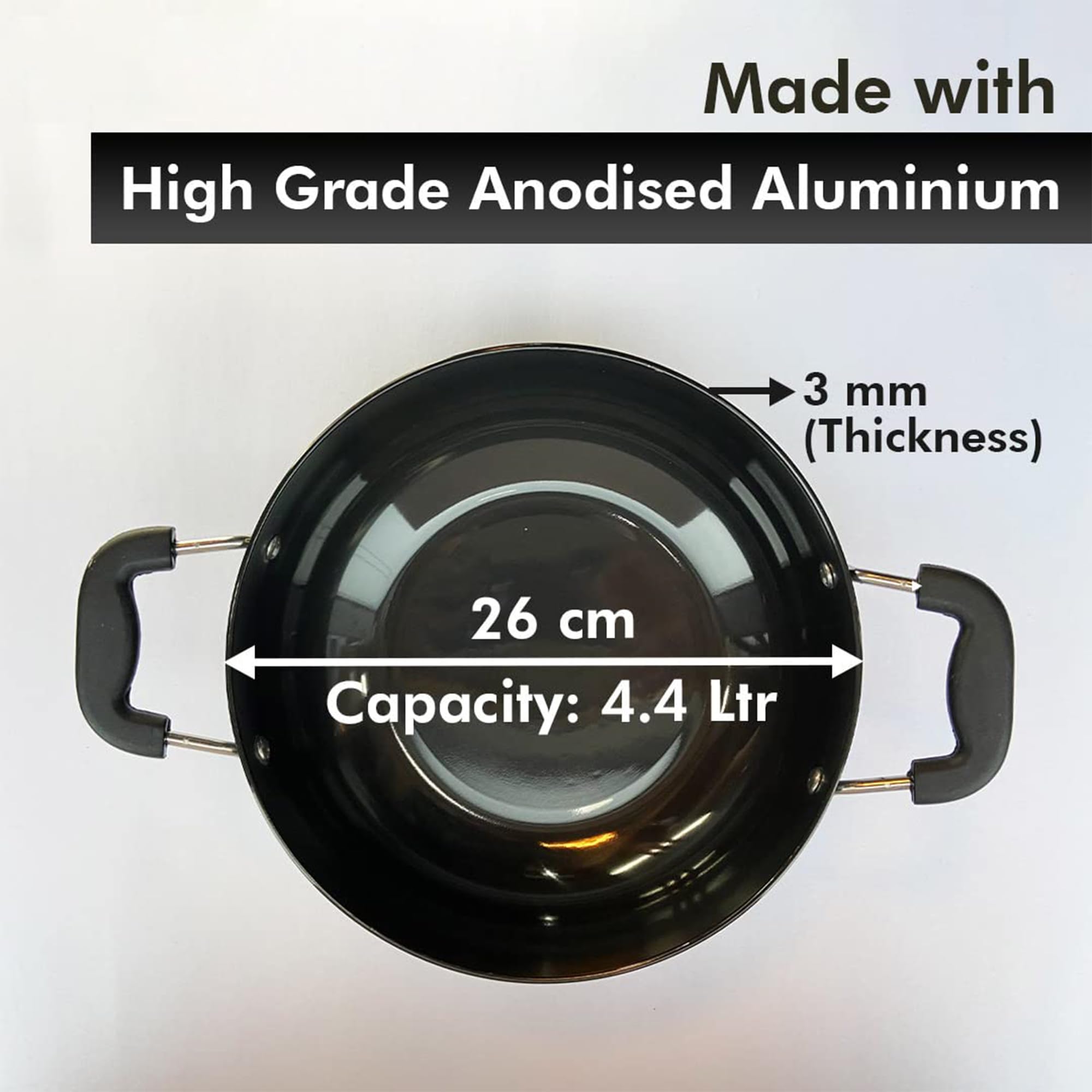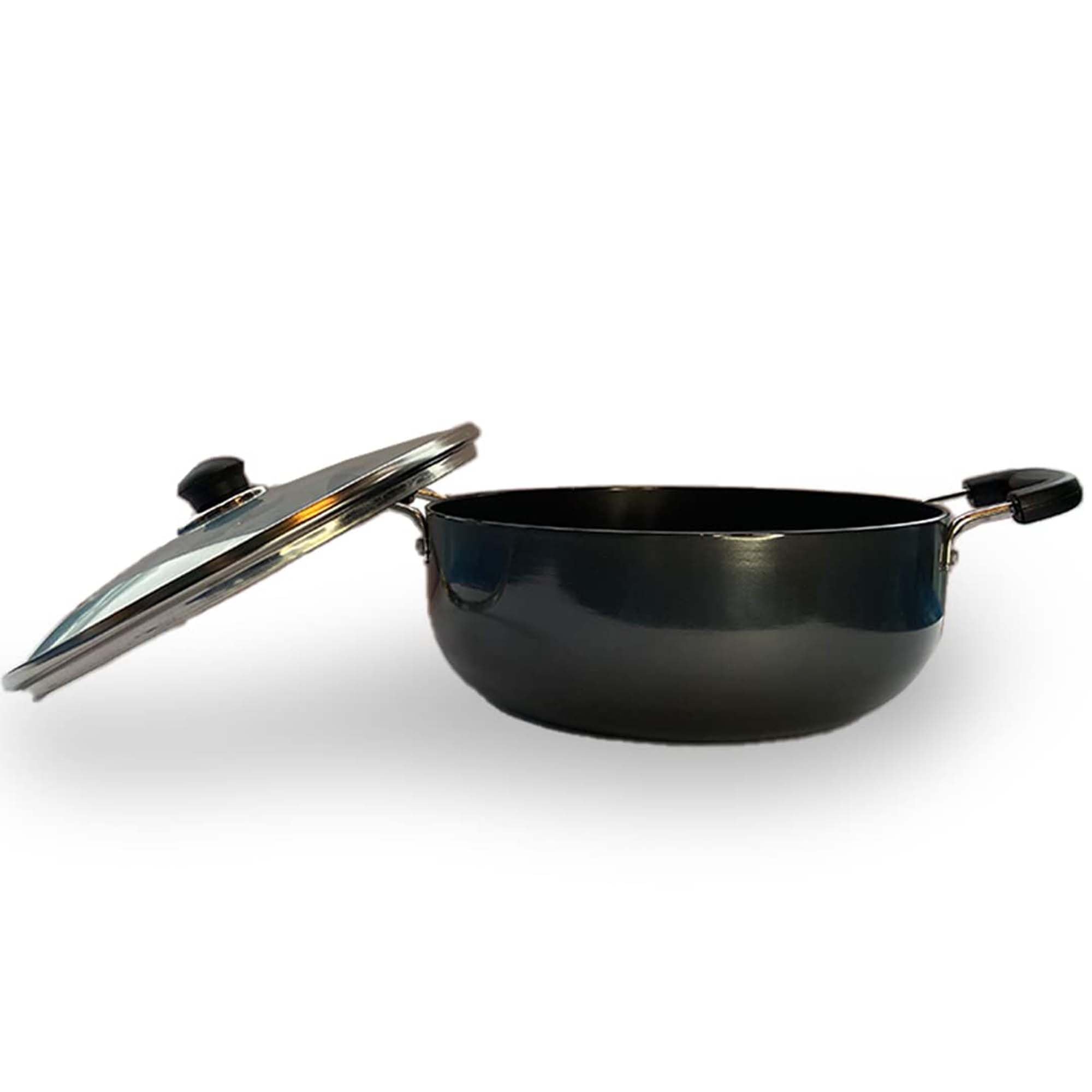 This kadai for deep frying is designed for those who need a reliable cookware piece in the kitchen. Made with aluminium, it is tough and effective, handling the high heat required for deep frying. Our deep fry kadai is compatible with induction stoves, making it a multipurpose tool for various cooking styles, whether you are frying, sautéing, or simmering. This wok provides strong heat distribution because of its base, allowing even cooking every time. The handle offers a firm grip that reduces the risk of spills, while its deep design accommodates large portions for family meals.Detailed Specifications: