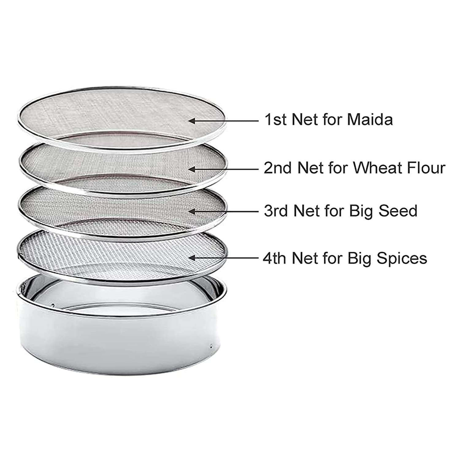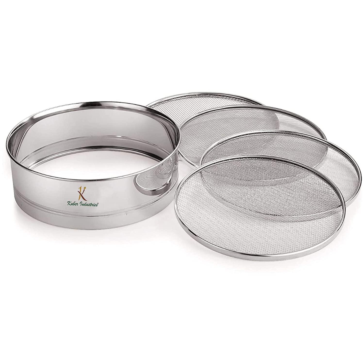 Kuber Industries introduces Stainless Steel Folding Chalni have an added advantage that the meshs can be changed depending on the size of the granules or particles to be filtered out from the flour. We provide you 4 different screens in the box which is built from high-quality stainless steel sheet. It's hygienic, strong, rustproof and easy to clean.