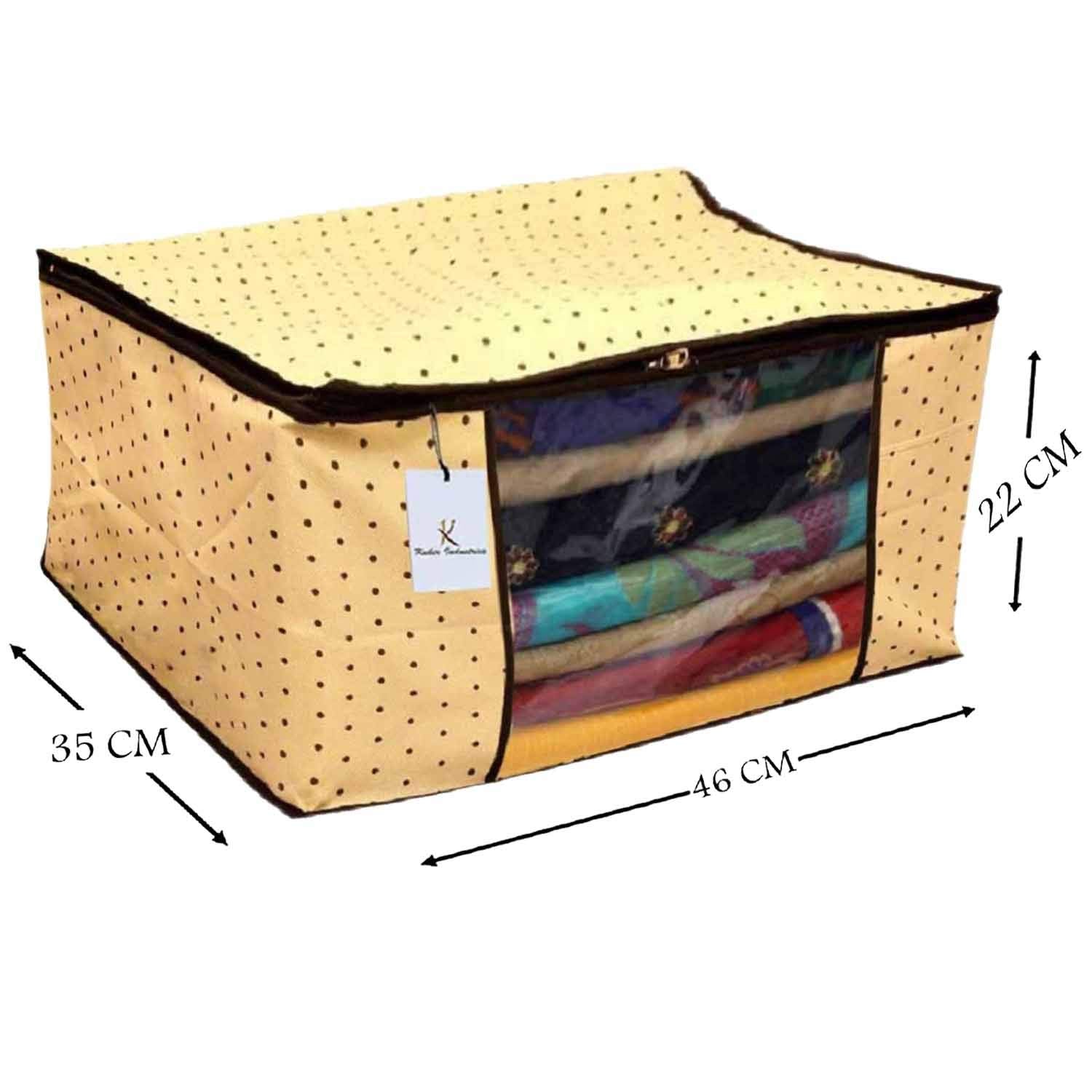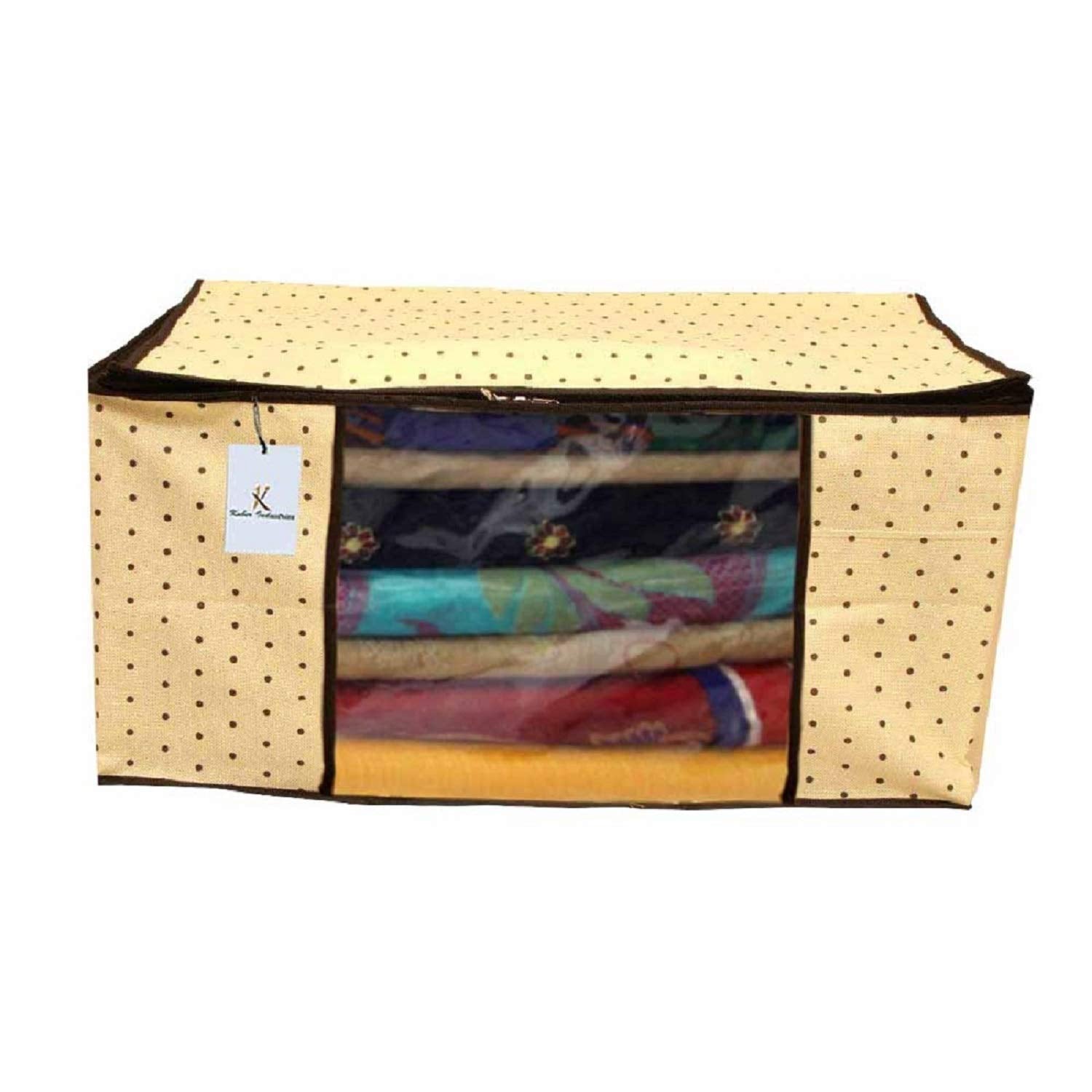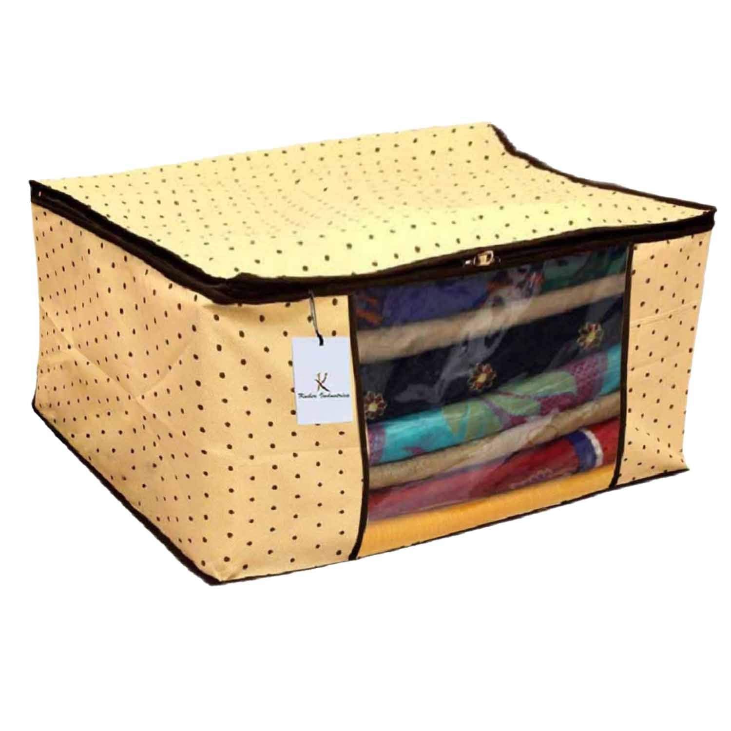 Made from durable, wear and tear-resistant non-woven fabric. Can Keep upto - 10 to 15 Sarees .Lightweight and flexible saree covers .Carefully stitched to offer additional strength .Transparent see-through window for easy identification of contents .Durable zipper for easy opening and closing .Long life High quality saree cover Bag for organizing your costly and favourite sarees .Package Contents: 4 Pieces Saree CoversDetailed Specifications: