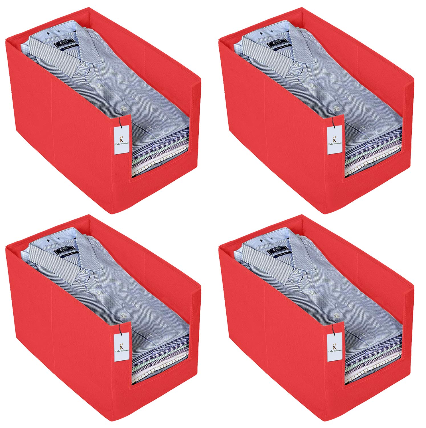 Material: Non woven, color: Red, package contents: 4 piece shirt stacker wardrobe organizers, size: 40 cm x 25 cm x 24 cm, care instructions: Easily washable, kuber industries shirt stacker/shirt wardrobe organizer is made of non-woven material, so this is very durable and has attractive colour design, you can arrange and organize more than one shirt and cloth in it, this is made of heavy 80 gsm non-woven fabrics and it can be very useful for you, this shirt stacker is completely collapsible when not in use and this make space in your wardrobe to store more clothes