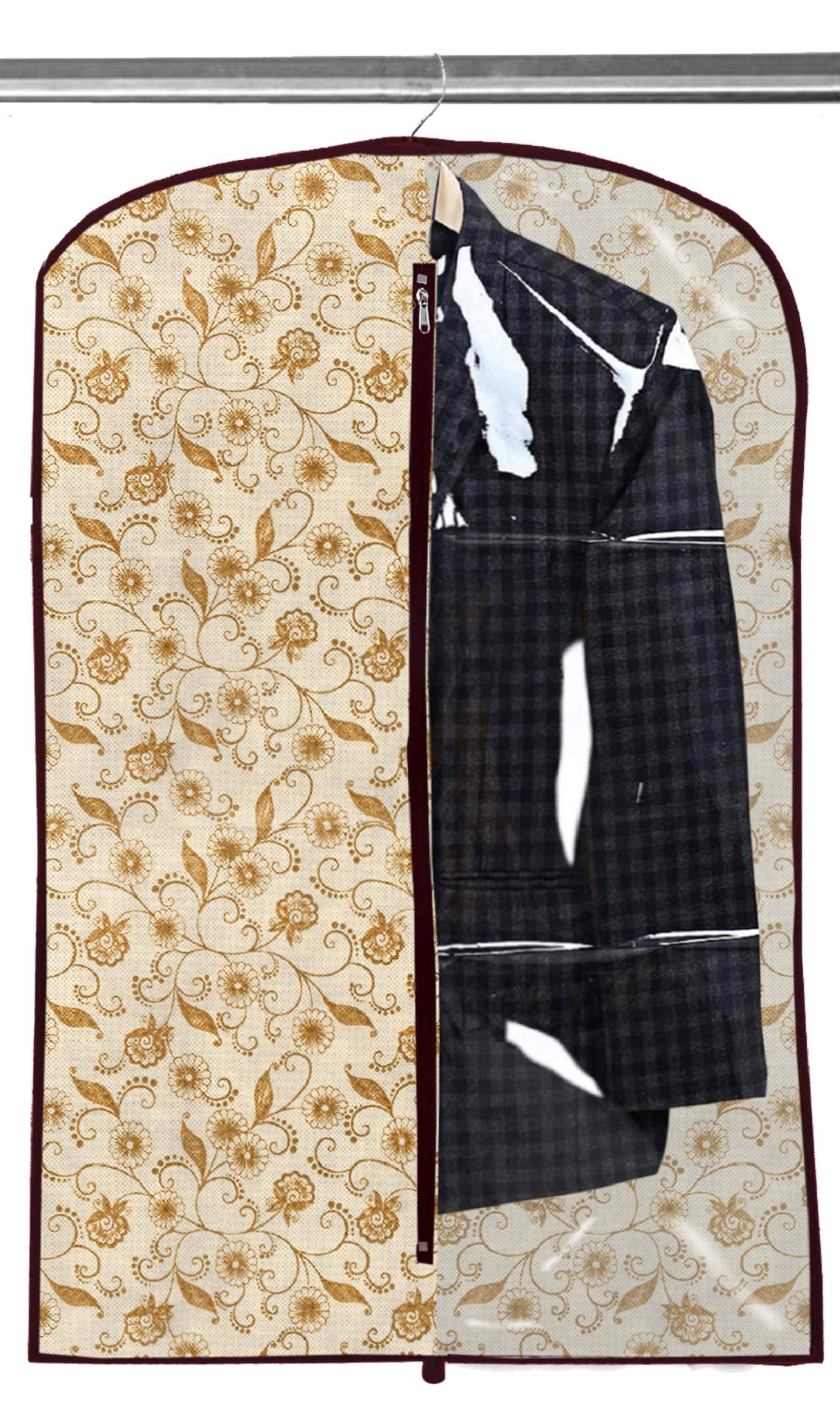 Kuber Industries coat cover is made of non-woven material, so this is very durable and long-lasting. This is useful garment cover that can safe your coat or blazer or sherwani from dust, stains. This cover has full length zip, shaped shoulders and top hole for hanger hook. Ideal for travel and long term storage of dresses, suits, pants and longer clothes, etc. This cover has carry handles and can be folded in two for easy carrying or traveling.Detailed Specifications: