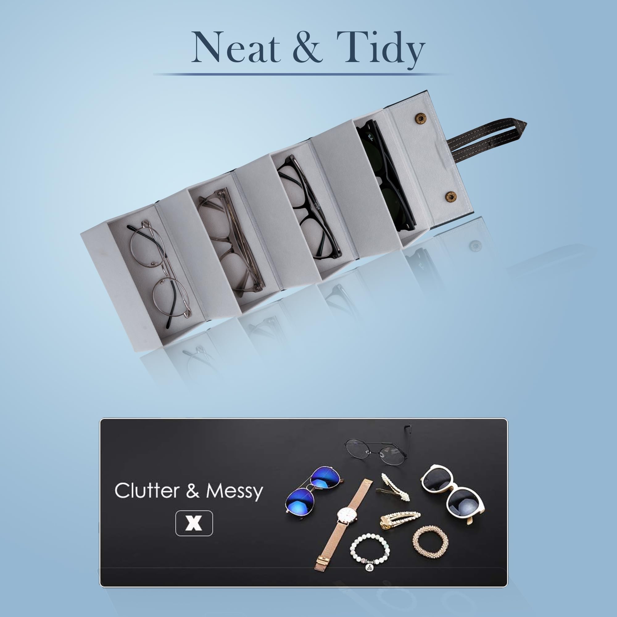 The Hanging and Foldable Sunglasses Organizer is not just a storage solution; it's a stylish addition to your home decor. Crafted from quality materials, it features a sleek and modern design that complements any interior. The organizer comes in a variety of colors and finishes, from classic black and white to elegant wood grain and metallic options, ensuring that it can seamlessly blend into any room’s aesthetic.One of the standout features of this organizer is its ability to make the most of your available space. It offers ample room to store sunglasses. Each compartment is designed to hold sunglasses of various sizes and shapes, from oversized aviators to sleek wayfarers.When not in use, the organizer can be easily folded down to a compact size, making it incredibly easy to store in a drawer or under the bed. This foldable design is perfect for those with limited space or for anyone who enjoys keeping their living area neat and tidy.Detailed Specifications: