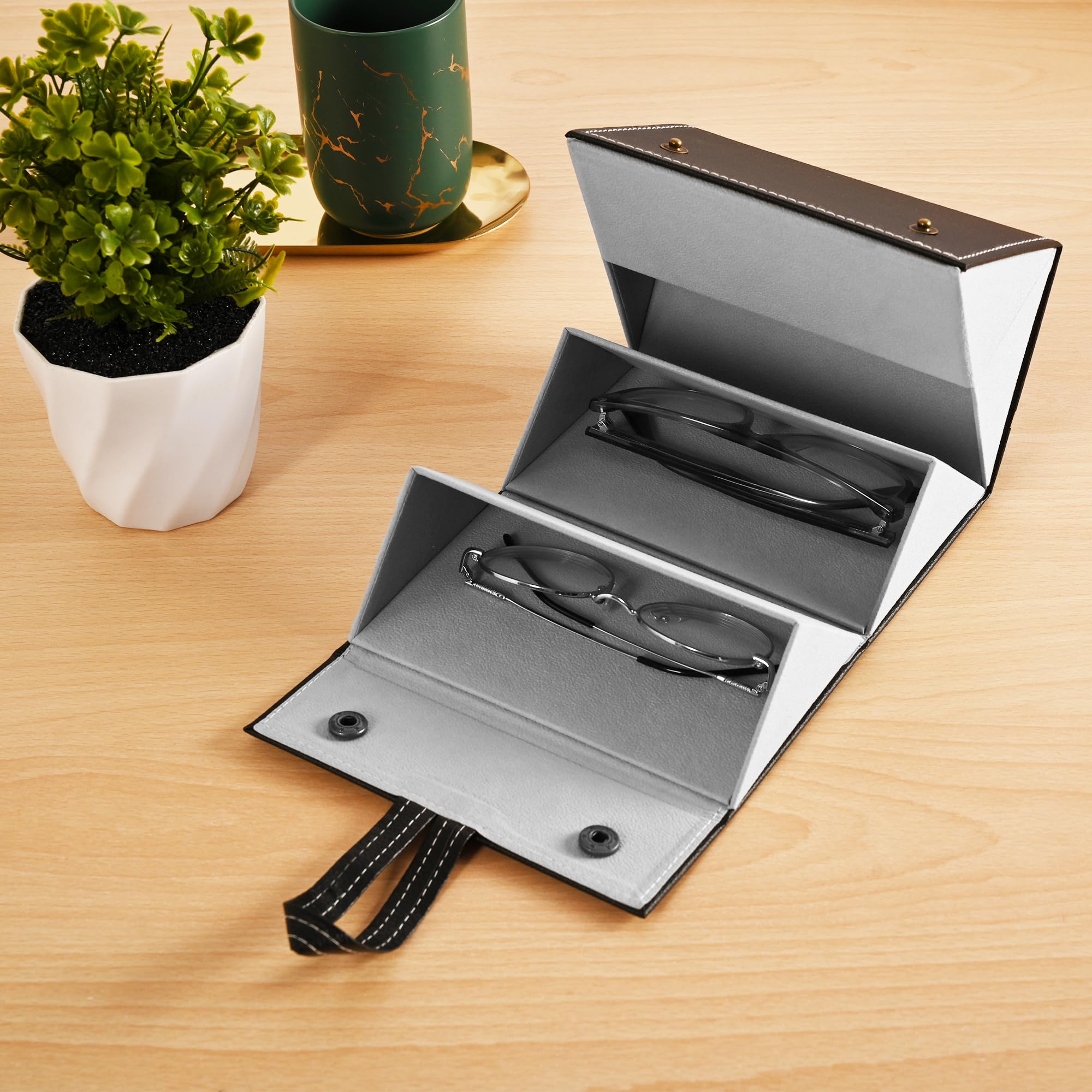 The Hanging and Foldable Sunglasses Organizer is not just a storage solution; it's a stylish addition to your home decor. Crafted from quality materials, it features a sleek and modern design that complements any interior. The organizer comes in a variety of colors and finishes, from classic black and white to elegant wood grain and metallic options, ensuring that it can seamlessly blend into any room’s aesthetic.One of the standout features of this organizer is its ability to make the most of your available space. It offers ample room to store sunglasses. Each compartment is designed to hold sunglasses of various sizes and shapes, from oversized aviators to sleek wayfarers.When not in use, the organizer can be easily folded down to a compact size, making it incredibly easy to store in a drawer or under the bed. This foldable design is perfect for those with limited space or for anyone who enjoys keeping their living area neat and tidy.Detailed Specifications: