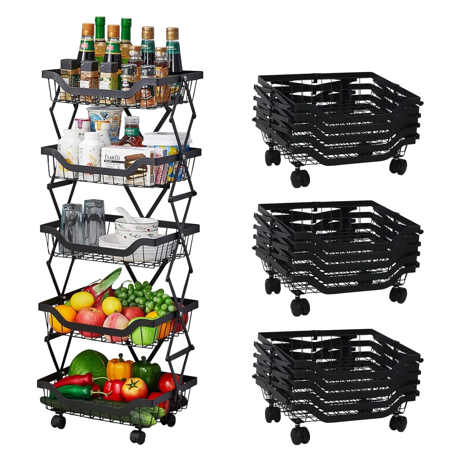 Kuber Industries Collapsible Storage Baskets are a versatile and efficient storage solution designed to streamline organization in your home. With a Five-layer design, these baskets provide exceptional storage capacity for a wide range of items, from clothing and toys to kitchen essentials and office supplies. Their collapsible feature allows you to save space when not in use, making them perfect for smaller living spaces. Whether you need to organize your kitchen pantry, create a mobile wardrobe, or set up a rolling filing system in your home office, these high-capacity, collapsible storage baskets are up to the task.Detailed Specifications: