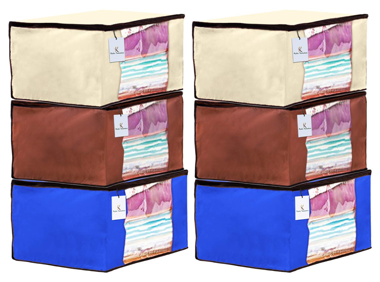 | Included Components : | 2 Piece Saree Cover (Color: Ivory), 2 Piece Saree Cover (Color: Dark Brown), 2 Piece Saree Cover (Color: Royal Blue) |