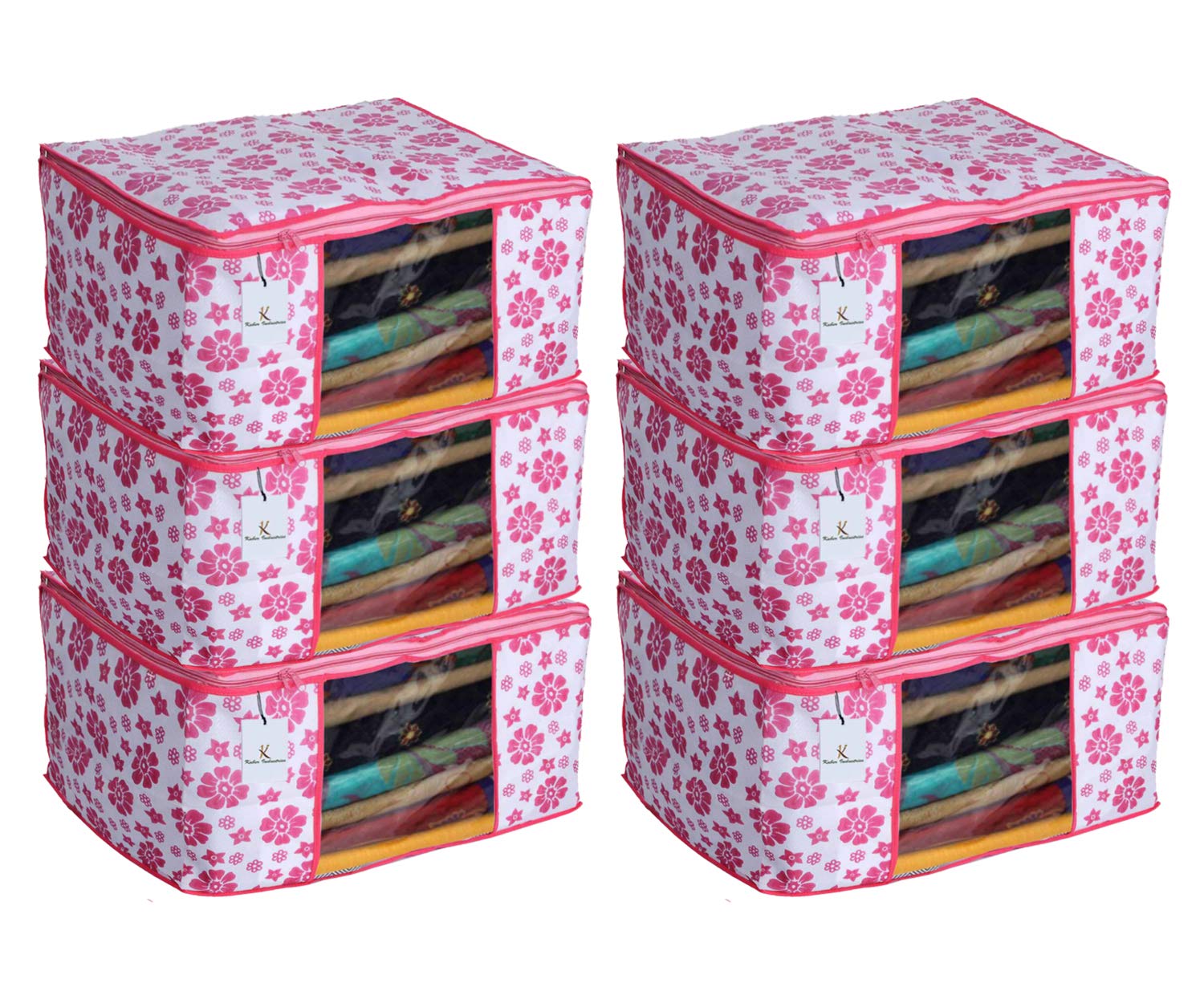 Style: Pack of 6 Made from durable, wear and tear-resistant non-woven fabric. Can Keep upto - 10 to 15 Sarees .Lightweight and flexible saree covers .Carefully stitched to offer additional strength .Transparent see-through window for easy identification of contents .Durable zipper for easy opening and closing. Long life High quality saree cover Bag for organizing your costly and favourite sarees. Package Contents: 6 Pieces Saree Covers.