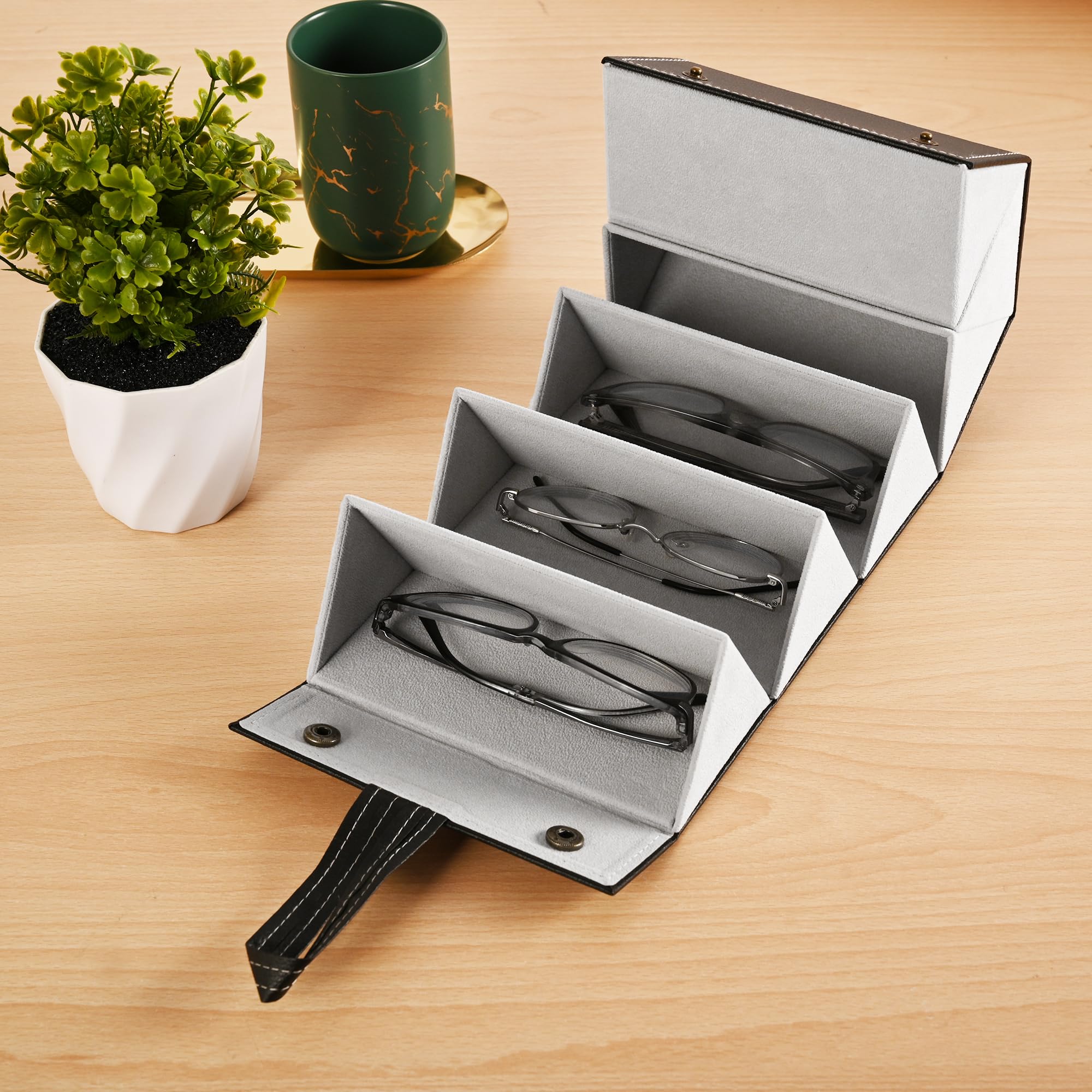 The Hanging and Foldable Sunglasses Organizer is not just a storage solution; it's a stylish addition to your home decor. Crafted from quality materials, it features a sleek and modern design that complements any interior. The organizer comes in a variety of colors and finishes, from classic black and white to elegant wood grain and metallic options, ensuring that it can seamlessly blend into any room’s aesthetic.One of the standout features of this organizer is its ability to make the most of your available space. It offers ample room to store sunglasses. Each compartment is designed to hold sunglasses of various sizes and shapes, from oversized aviators to sleek wayfarers.When not in use, the organizer can be easily folded down to a compact size, making it incredibly easy to store in a drawer or under the bed. This foldable design is perfect for those with limited space or for anyone who enjoys keeping their living area neat and tidy.Detailed Specifications: