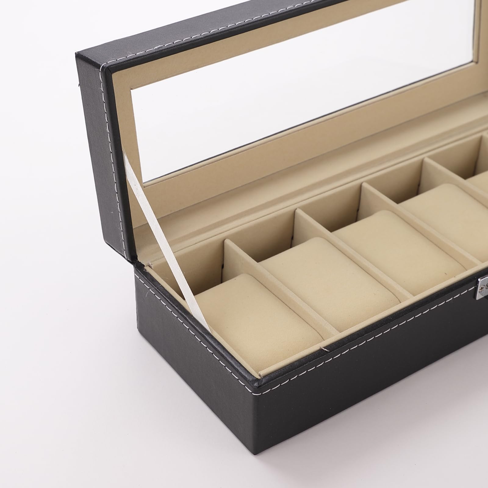 Kuber Industries Watch Organizer 6 Slot is the perfect solution for organizing and storing your valuable timepieces. With its large capacity and compartmentalized storage design, this watch organizer offers ample space to keep your watches safe and secure. Made from durable PU material, it provides long-lasting protection for your watches while adding a touch of elegance to your space. The high transparent glass window allows you to showcase your watches while keeping them dust-free. This watch organizer is not only functional but also aesthetically pleasing, making it a great addition to any watch enthusiast's collection.Detailed Specifications: