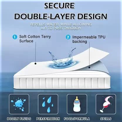 WATERPROOFThis Mattress is purely waterproof with airflow technology that allows air to circulate through the protector but repels liquids. Protects against allergens, dust mites, bacteria, perspiration, urine and fluids. | DURABLE MATERIALIt made PVC Protect your mattress from fluid spills like sweat and urine with Safe Rest's exclusive membrane layer. This unique design blocks fluids from reaching the mattress while still allowing the mattress to breathe preventing heat buildup. | SOFT & NOISELESSThe mattress protector fits perfectly and does not rustle or make noise to disrupt your sleep. This is especially helpful if you have children or elderly around. | EASY TO CAREHand wash or machine wash, low tumble dry. DO NOT iron, dry clean, bleach or use fabric softener but a mild detergent. Ensure that you do not place the waterproof back coating under strong sunlight. |