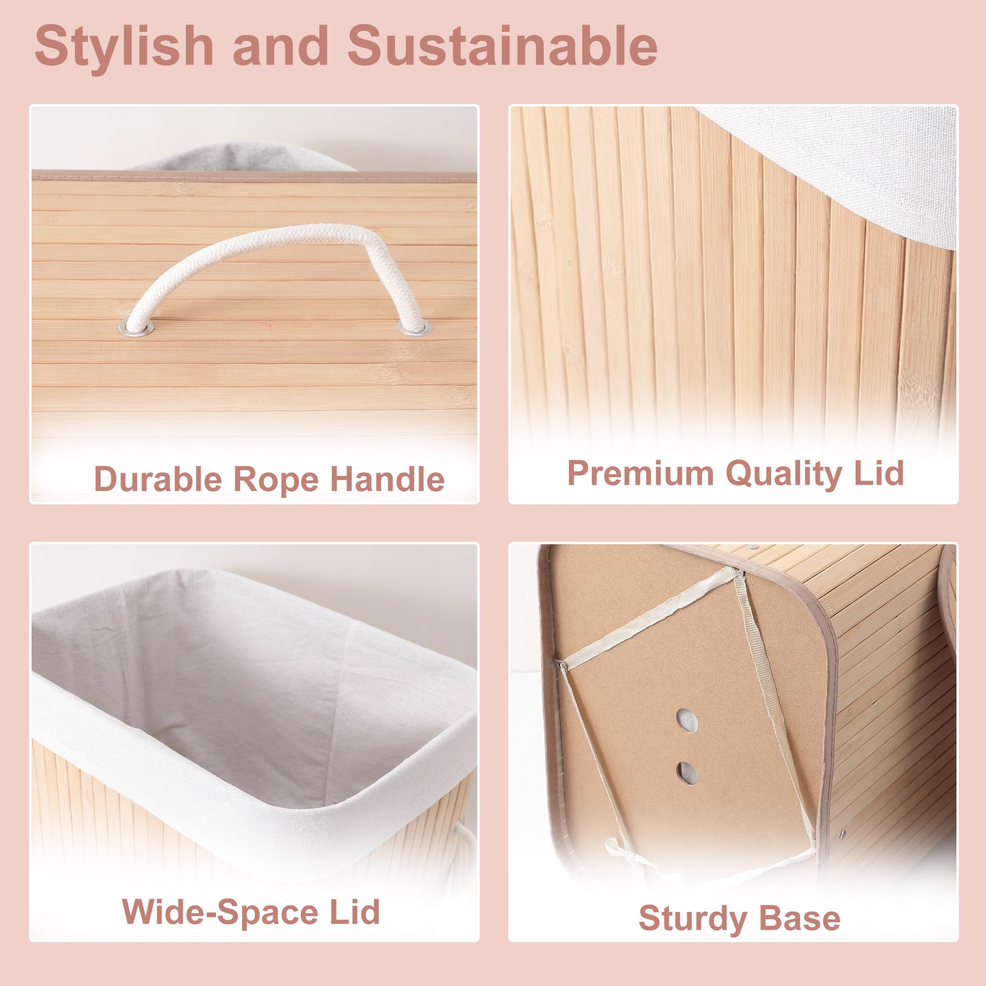 This is a storage basket for clothes which helps you keep your laundry neat as it is made from bamboo and our design includes a lid. You can use this cloth basket for any laundry task since it makes sure all your clothes are organized. This basket for storage clothes has a 72 Ltr capacity so you can have enough space for all your items.Detailed Specifications: