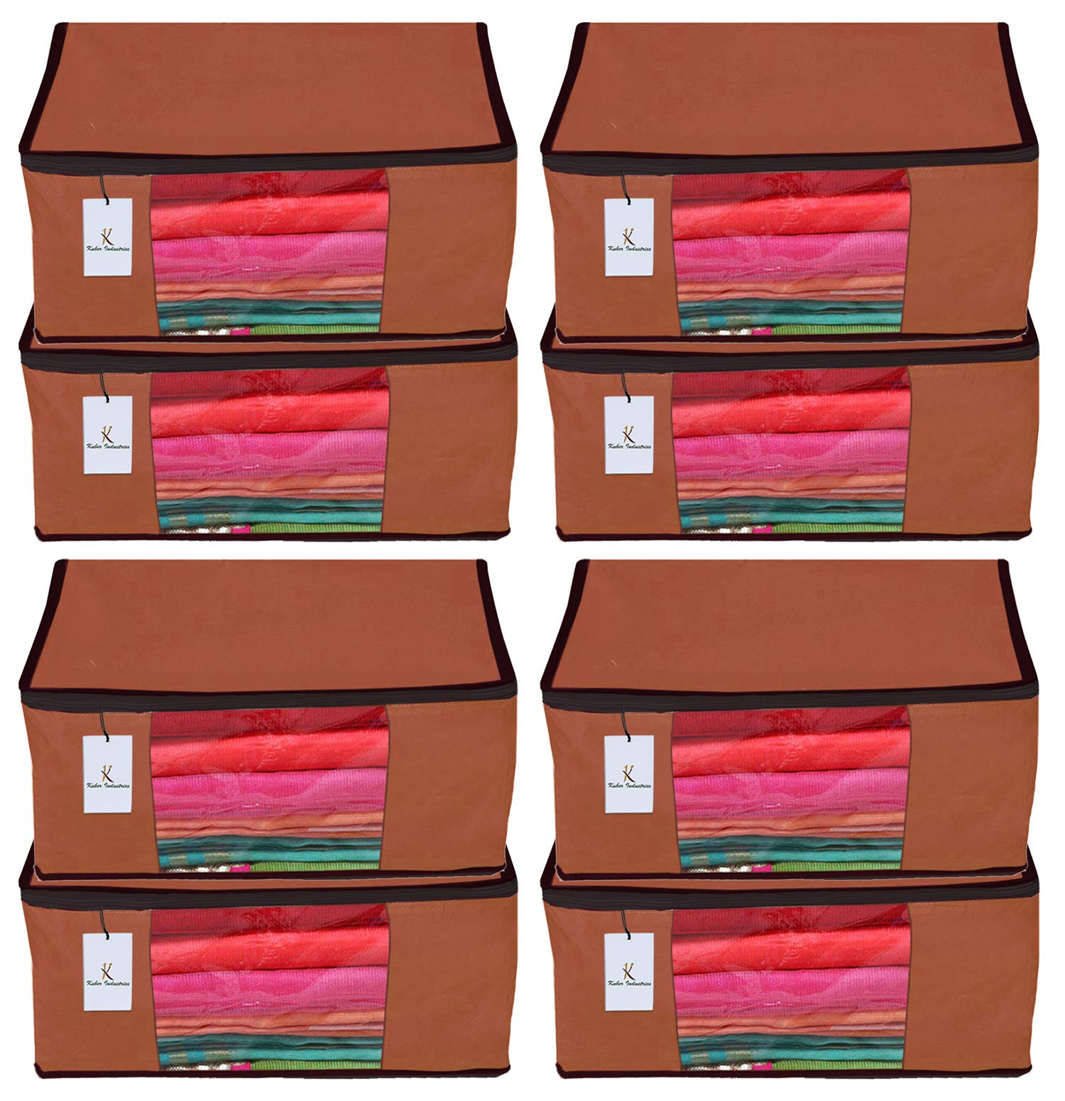 Made from durable, wear and tear-resistant non-woven fabric. Lightweight and flexible saree covers, carefully stitched to offer additional strength, size of each bag: 43 cm x 35 cm x 22 cm, transparent see-through window for easy identification of contents. Durable zipper for easy opening and closing, ideal for storing sarees and protecting them from dust and insects, package contents: 8 piece saree cover (color: Dark brown).Detailed Specifications: