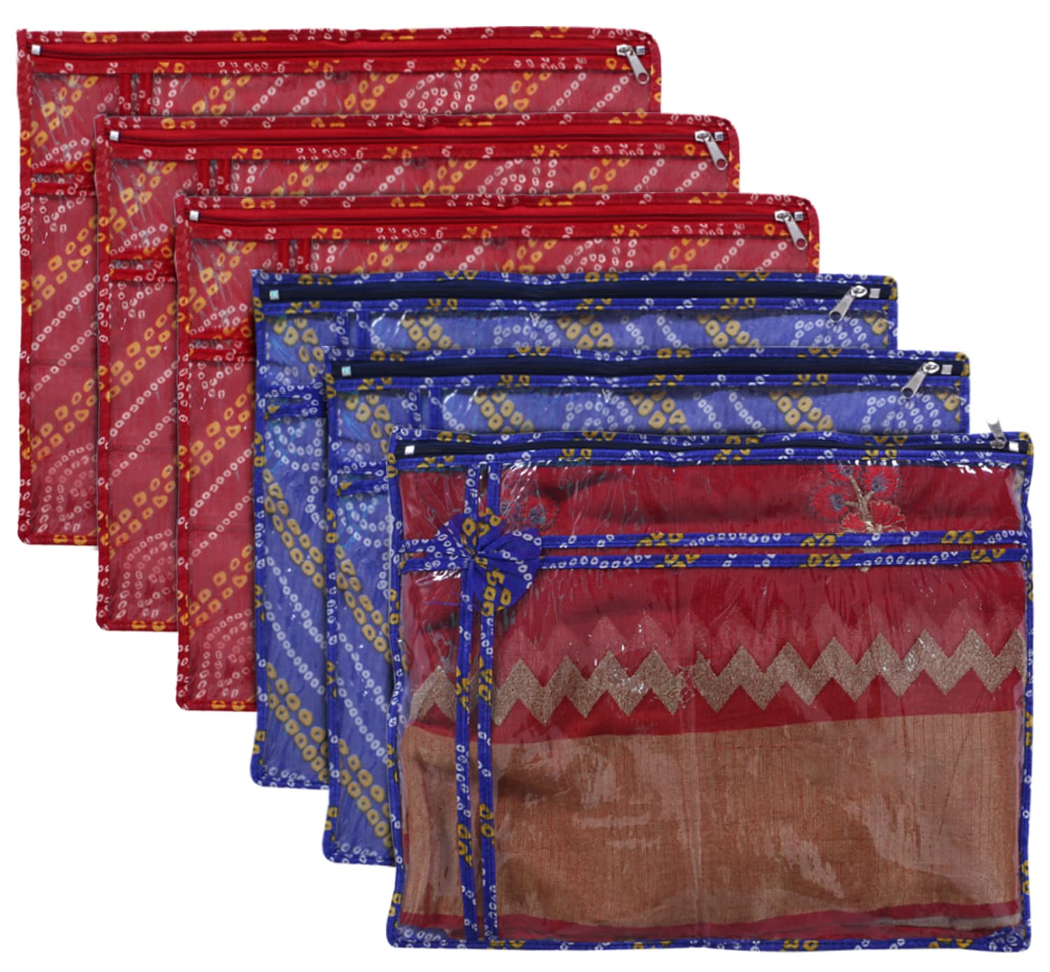 | Included Components : | (Pack of 6) 3 Piece Saree Cover (Color: Blue), 3 Piece Saree Cover (Color: Red) |