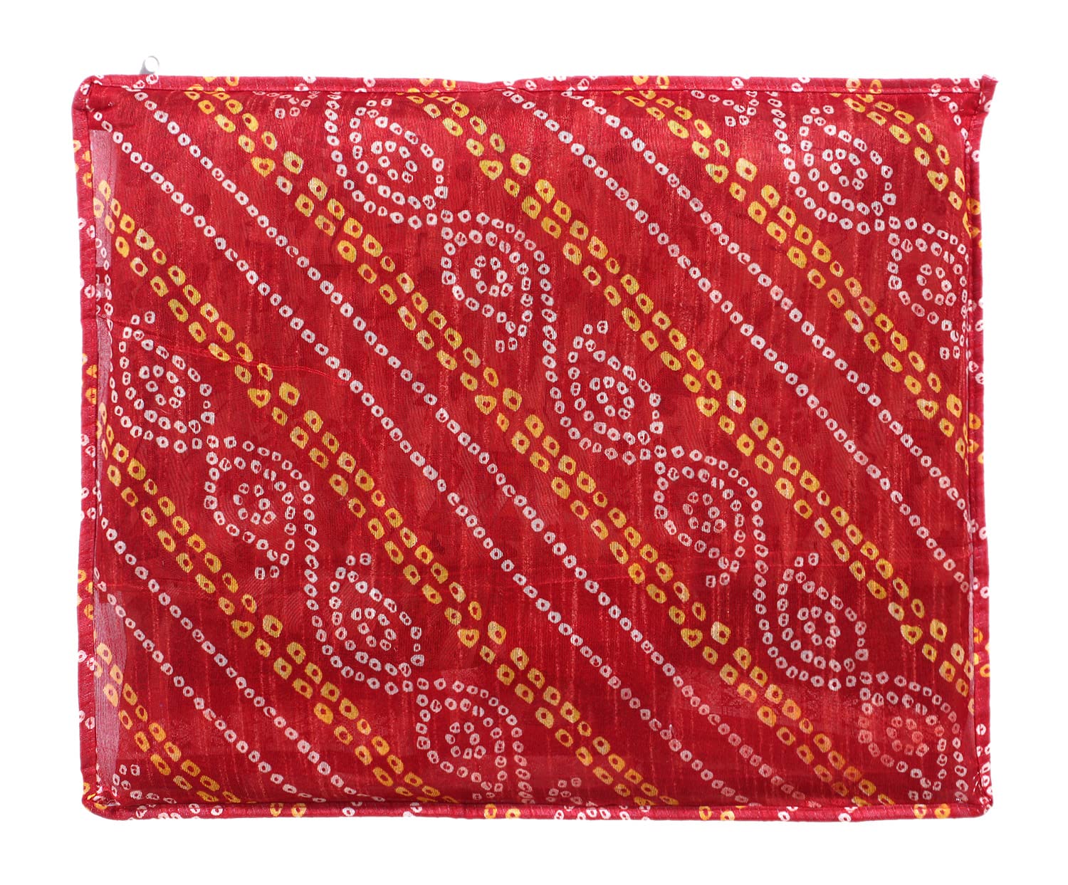 Kuber Industries Bandhani Print PVC Foldable Single Saree Cover|Clothes Storage For Saree, Lehenga, Suit With Transparent Pack of 9 (Red)