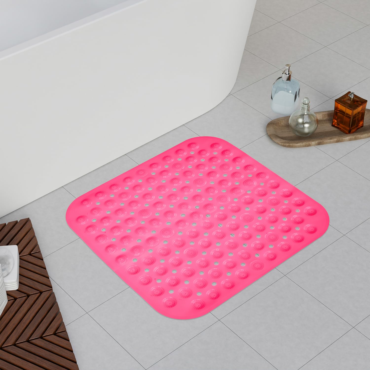 Elevate your Daily Bathroom Routine with the Kuber Industries Bath Mat. Meticulously designed, this bath mat introduces an element of comfort and safety to your space. Its plush texture greets your feet post-shower, effectively absorbing moisture and preventing slips on wet floors. Crafted with a non-slip backing, it ensures stability and security. The array of designs and colors available allow you to seamlessly integrate practicality and style into your bathroom decor.Detailed Specifications: