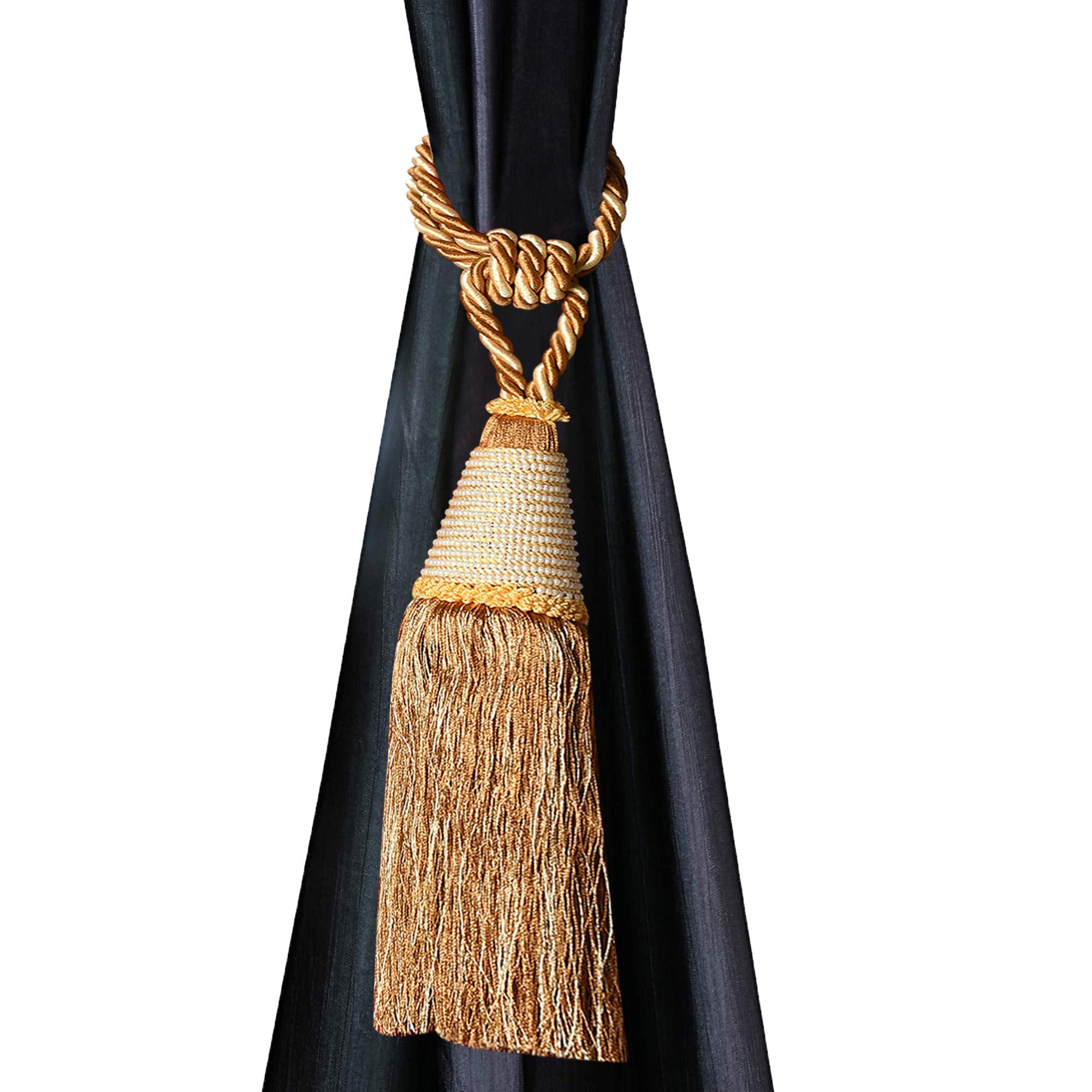 Kuber Industries curtain tie back tassel is made of quality polyester material. Curtain set is uncompleted without tassel tie back, when curtain not in use then use tie back to hold curtain. Tassel tie back may consist of a single or paired set of tassels connected to a rope or braid with either one or two loops. Tassel Tie back increases the beauty of curtain. With its elegant design you can also use it as décor or to hold back any curtain in your home.Detailed Specifications:
